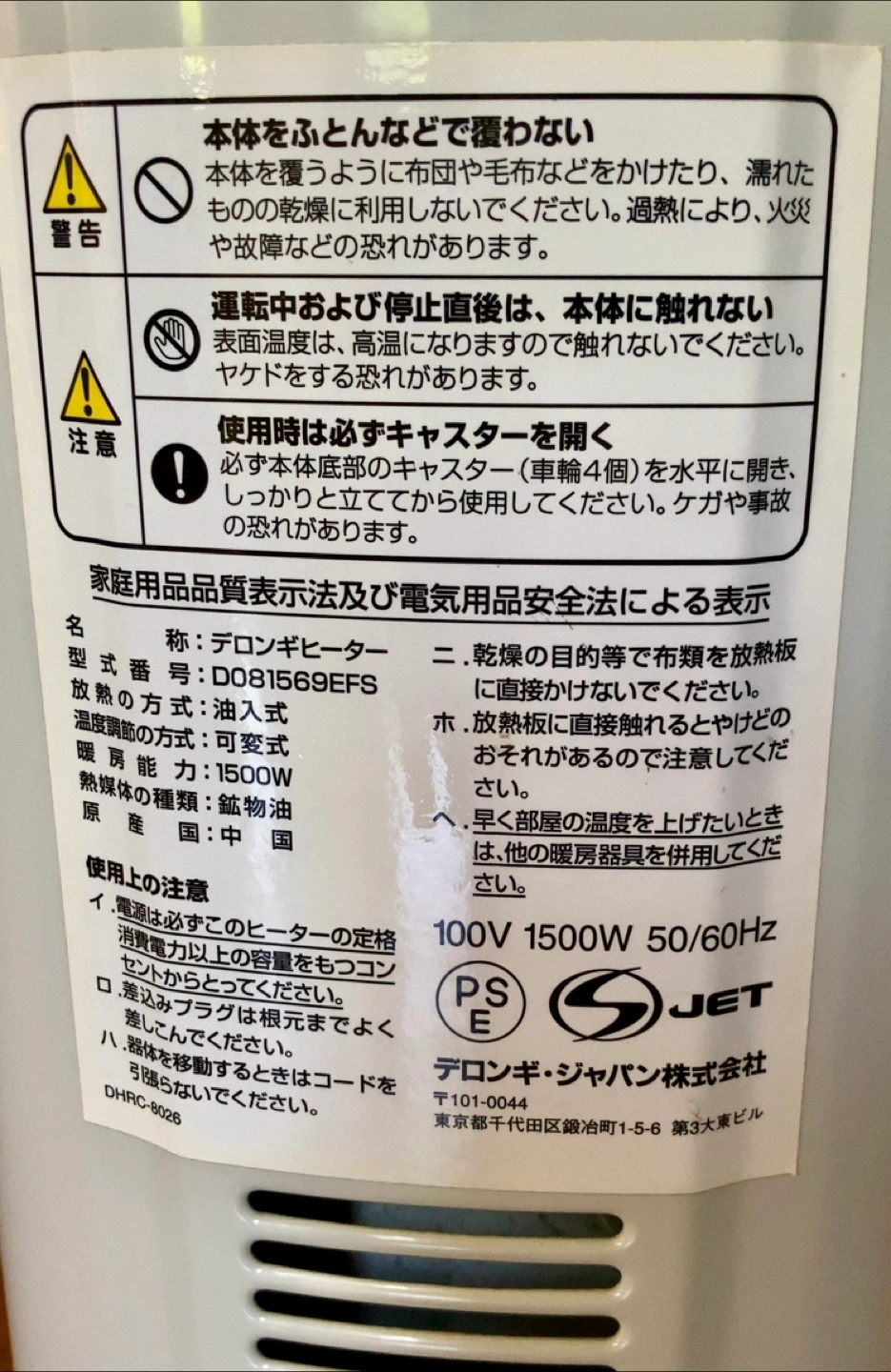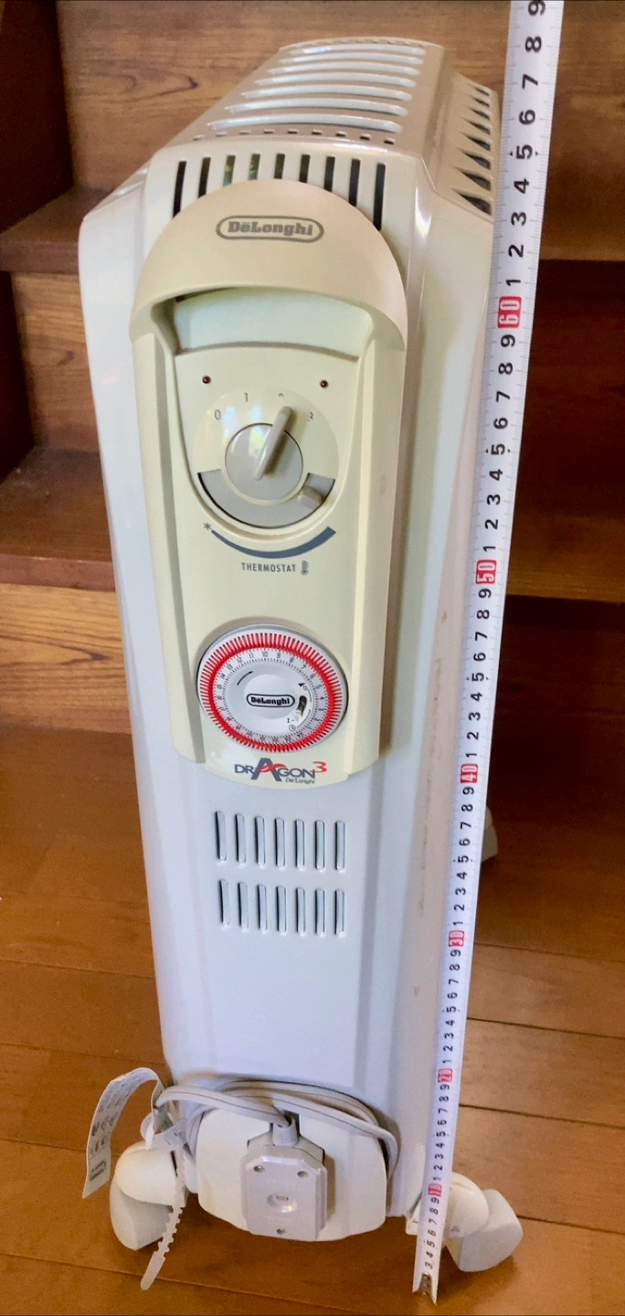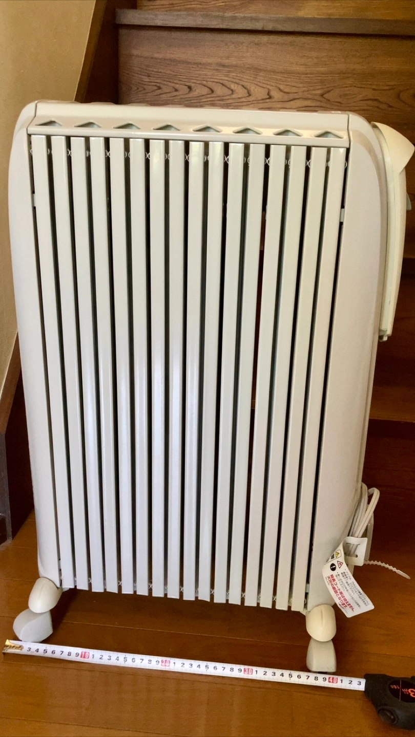 15年程前に購入したデロンギ オイルヒーターです。 商品状態:中古・室内保管 ブランド:DeLonghi (デロンギ) サイズ:縦15㎝×横43㎝×高さ66㎝ 写真が全てです。本体上部に取り付けるタオル掛けは破損で破棄したので欠品です。 中古品であるということをご了承の上、ご購入ください。 重量があるため、引き取り時は車かキャスター付きの台車があると便利です。 ご不明点等ございましたらご連絡ください。