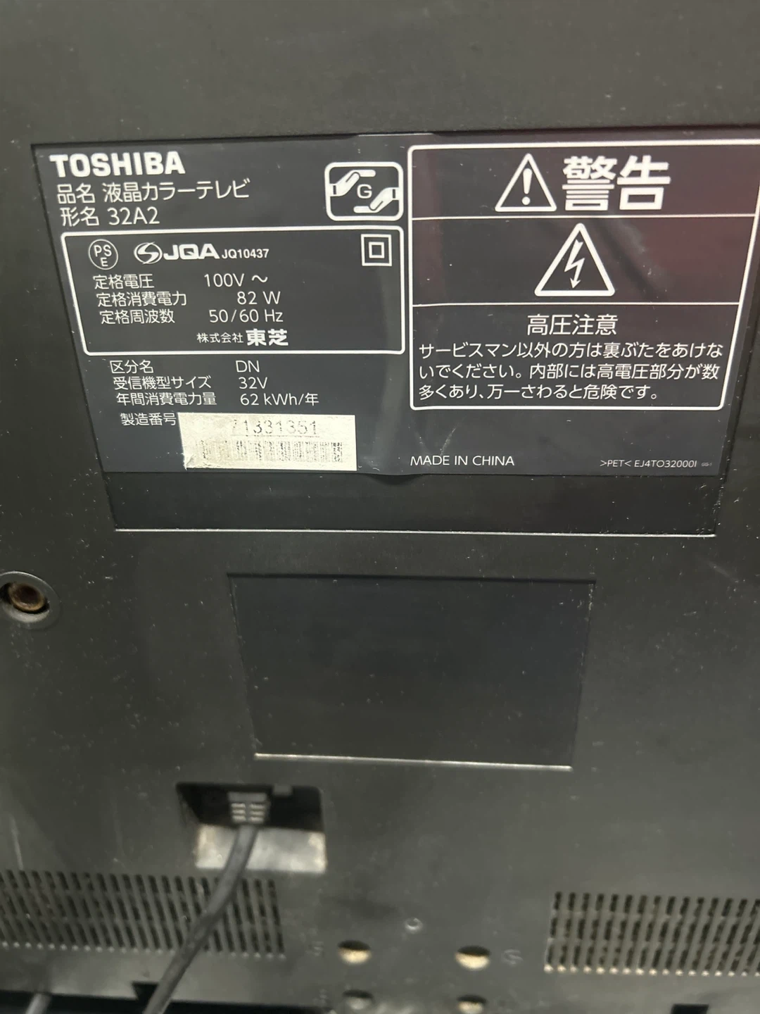 トウシバの液晶カラーテレビです 【情報】 ブランド:トウシバ 品名:液晶カラーテレビ 型名:32A2 受信機型サイズ:32V 中古品であることご了承ください 新しいTVを 買いましたので どなたか使用してください。
