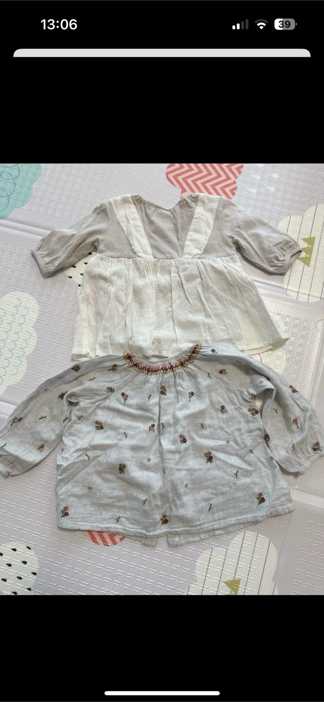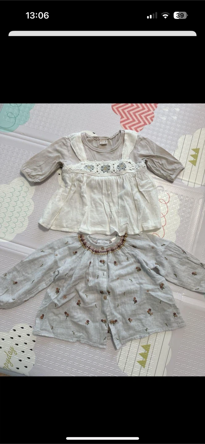 上がプティマイン、下はZARAのものとなります。共にお気に入りだったので使用感あります。 プティマインはサイズ90センチ(小さめ) ZARAは12-18ヶ月となります。 共に2歳ぐらいの時に着用していました。 中古品であることご了承ください