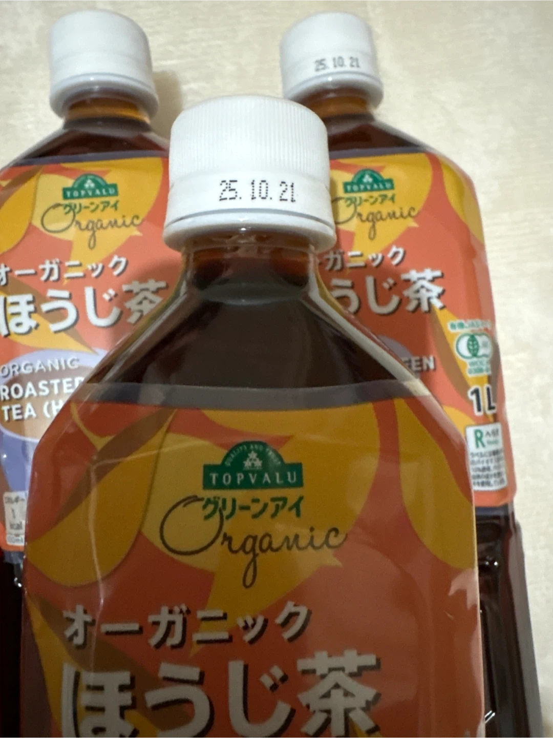 トップバリュ オーガニックのほうじ茶1Lです。 ・内容量:1L ・製造年月日:25.10.21 中古品であることご了承ください 買いすぎていて飲みきれない為、日にち近いですが気にしない方いかがでしょうか?