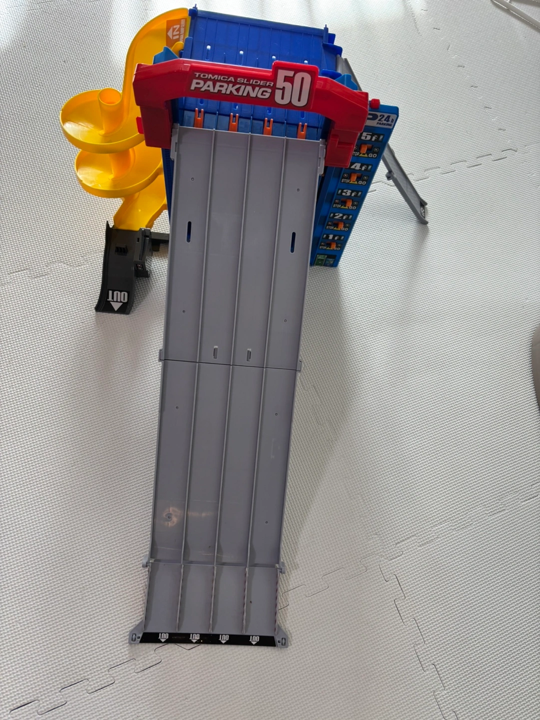トミカワールド トミカ スライダーパーキング50 ロングスライダー付き5階建て立体駐車場! トミカ駐車遊びに加えて、インパクト抜群のスライダー遊びが楽しめます。 ●各フロア&ループからトミカが次々一斉走行! スイッチを押すとロングスライダーが下がって全フロアからトミカが発車していくよ! ロングスライダーが1Fまで降りたらループスライダーが同時に発動するよ! 大迫力のトミカ大量発車を楽しもう!! ●発車パターンいろいろ! 一斉発車だけでなく、各フロアごとに発車させるなど、いろんな発車パターンを楽しめるよ! ●50台駐車可能なよくばりパーキング! トミカ最大50台駐車可能!いっぱい駐車しよう! ●スライダーを収納するだけ!簡単おかたづけ! 遊び終わったら簡単におかたづけ出来て、そのままトミカを駐車して飾っておけるよ! ●電池いらずで遊べるよ! 今年購入して数回遊びました。 トミカを走らせているので小傷は多少ありますが、 比較的綺麗です!! トミカ好きなお子様に是非👦🏻👶🏻✨ 箱等はありません。 南北線本駒込駅周辺での受け渡しになります。