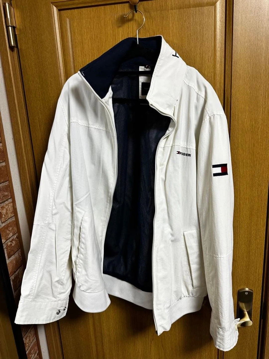 トミーヒルフィガーのジャケットです ・カラー:ホワイト ・ブランド:TOMMY HILFIGER(ロゴあり) ・使用感あり 中古品であることご了承ください 5.6回ぐらいしかきてないので目立った汚れとかは、無しです!
