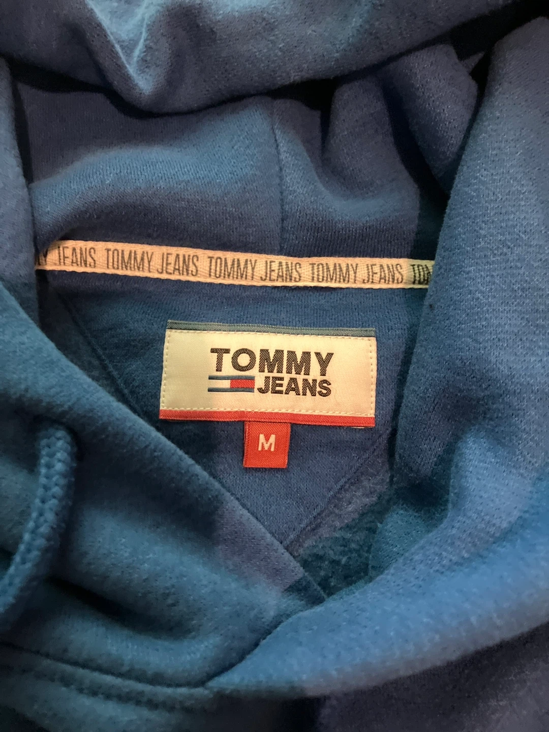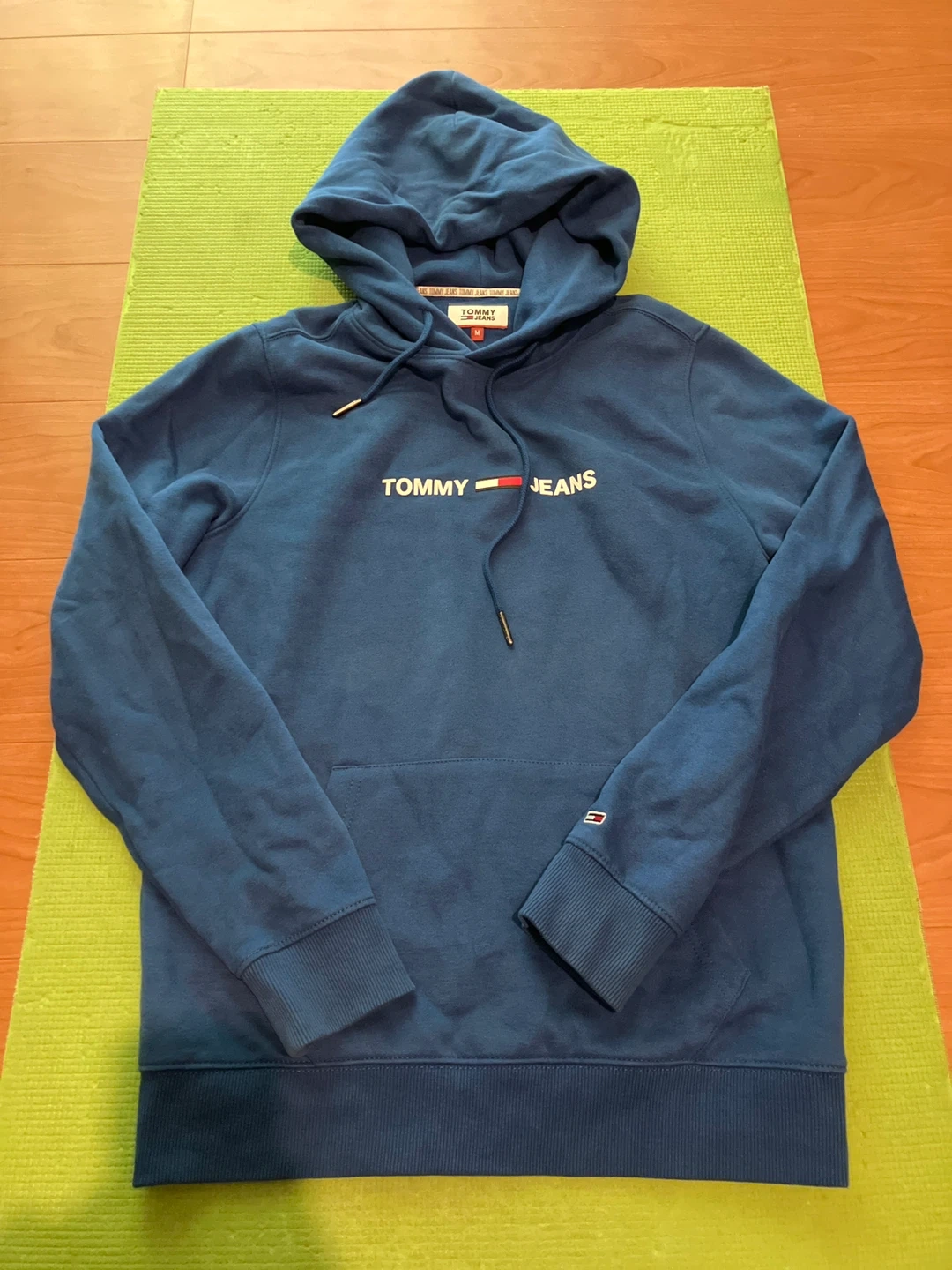 トミーヒルフィガー TOMMY JEANSのパーカーです ・ブランド:TOMMY JEANS ・カラー:青 ・サイズ:M ・状態:使用感少なめ Mにしては小さいので、普段S かジュニアの150〜160程度の方 向きだと思います 中古品であることご了承ください