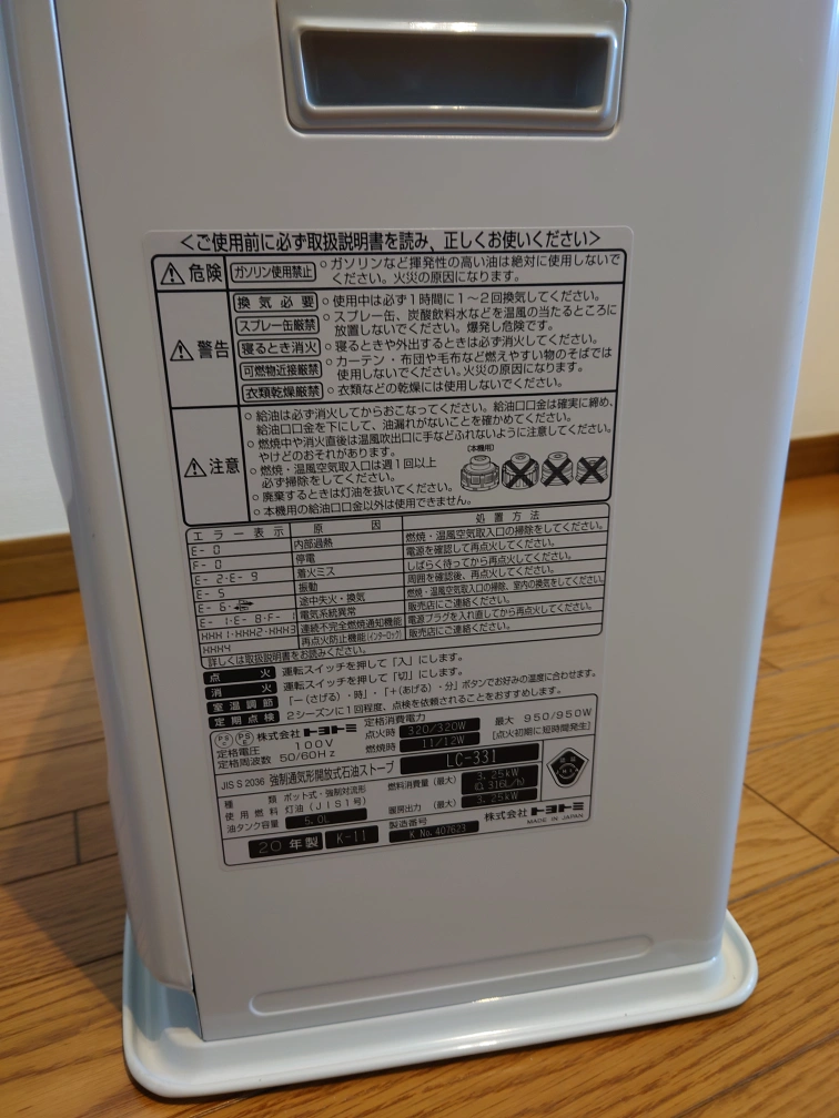 まだまだ使えます。取りに来て頂ける方限定にて。 品番・型番LC-331(W)ブランド名トヨトミ(TOYOTOMI) 機能と仕様 畳数の目安(暖房)9 畳熱出力3.25 Kilowatts動力源電源コード式取り付けタイプフロアマウント屋内屋外での使用インドア対応熱源温風式 サイズ 商品の重量7.7 キログラム品目の寸法 (D x W x H)29.6奥行き x 37.6幅 x 42.8高さ cm