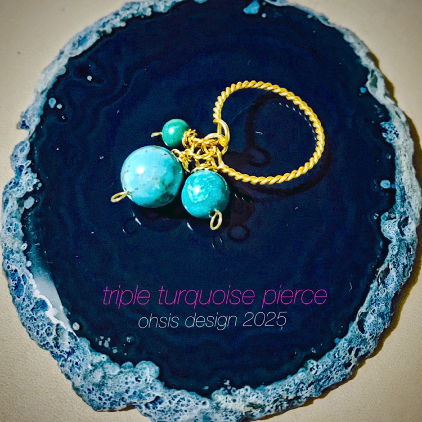 NEW DESIGN ハンドメイドのWターコイズリング8mm〜2本縒りK18GP