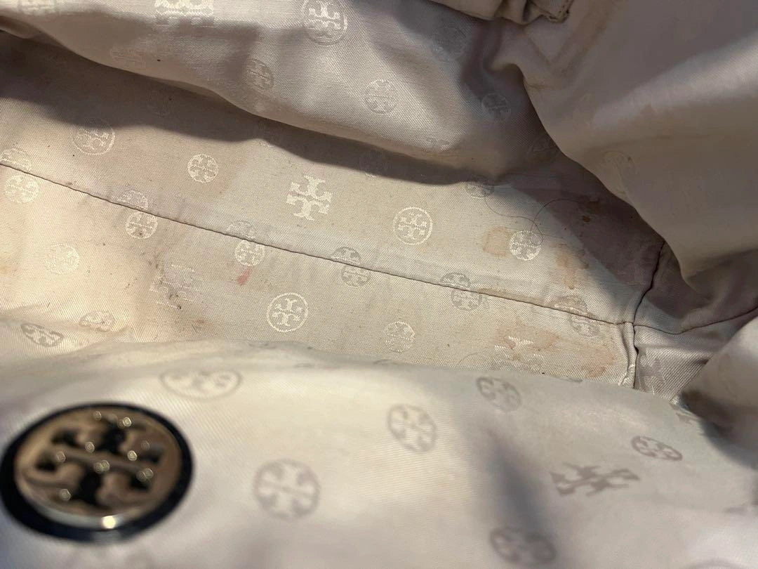 全体的な使用感はないかと思います。 4つ角のうち1箇所に目立たない程度のスレがあります。 画像にありますように背面に水色の色移りがあります。 中も多少汚れがあります。 あくまでusedですので、神経質な方はご遠慮ください。 横45 縦29 マチ13 ご希望の方はお気軽にご連絡ください。