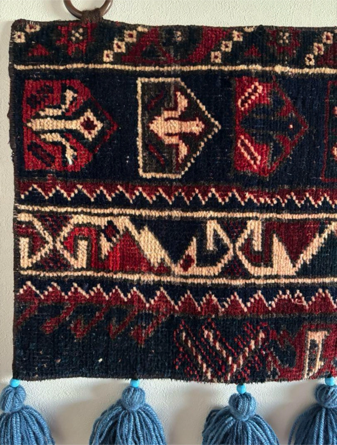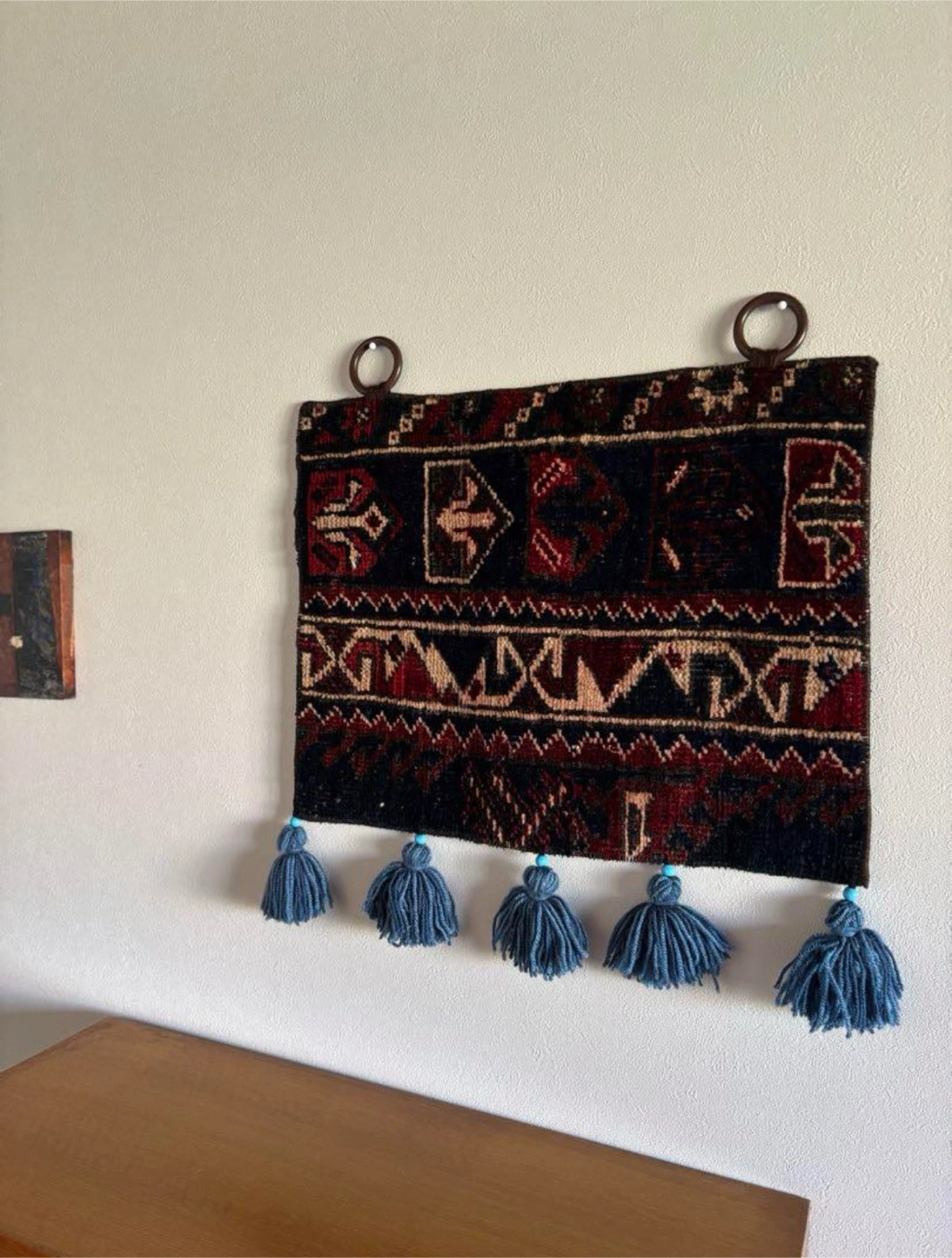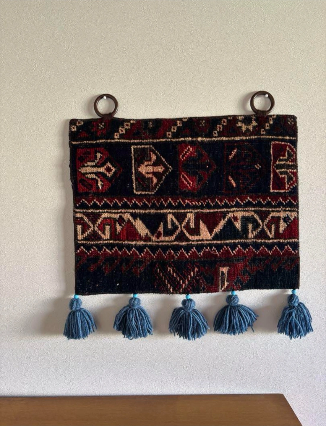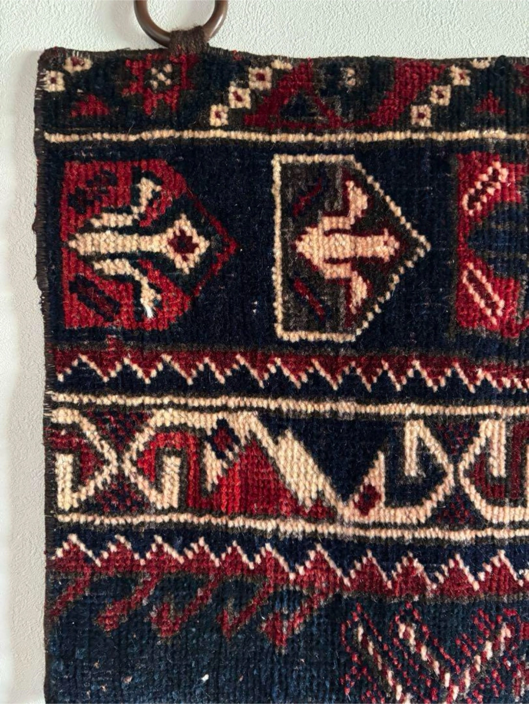 vintageトルコラグ を現地でタペストリーに したものです。 クリーニングされ、とても綺麗な状態です。 紺色ベースに幾何学模様が美しい ちょうど良いサイズ感のタペストリーだと思います! 国:トルコ アナトリア 大きさ:縦39cm (フリンジなし)横50cm