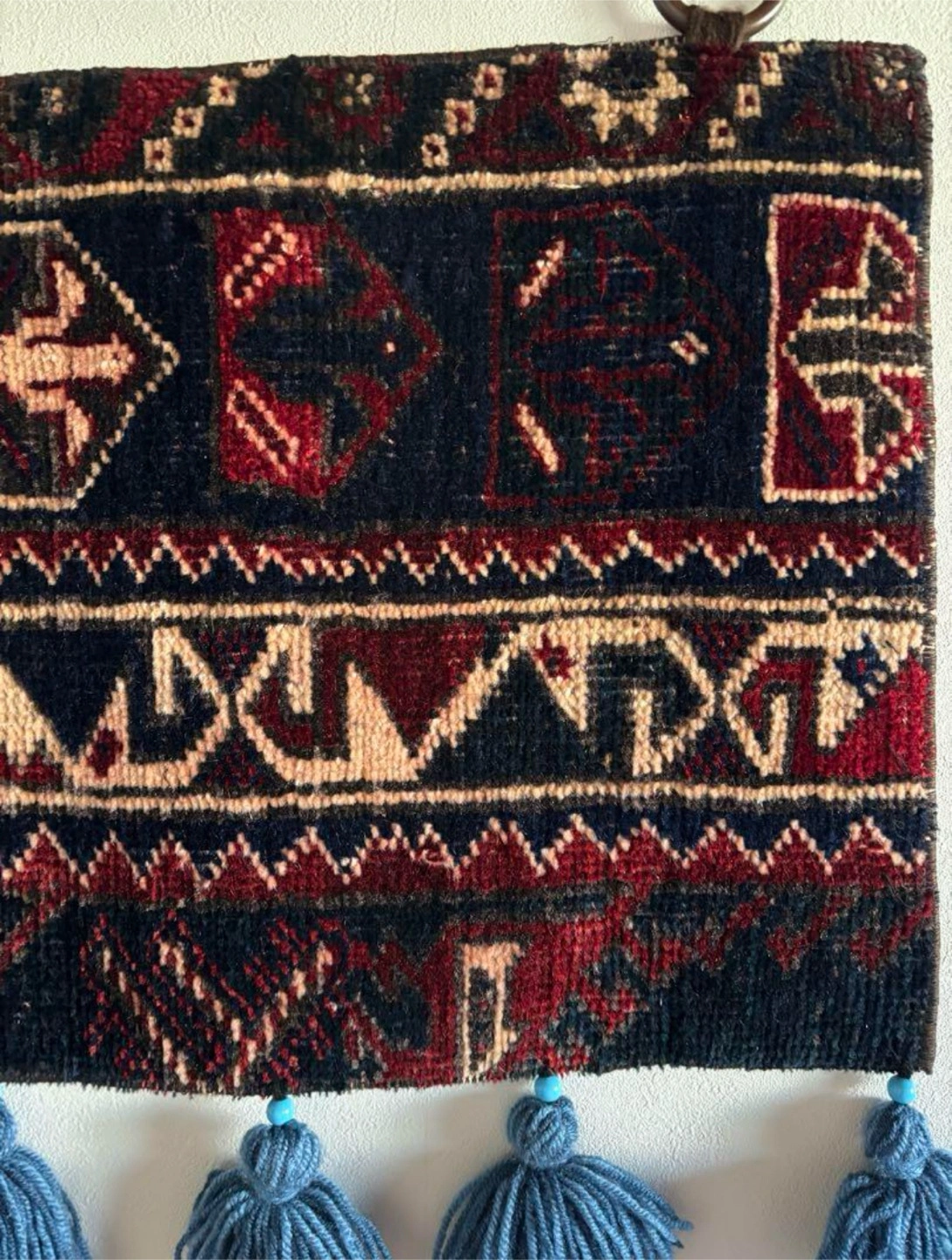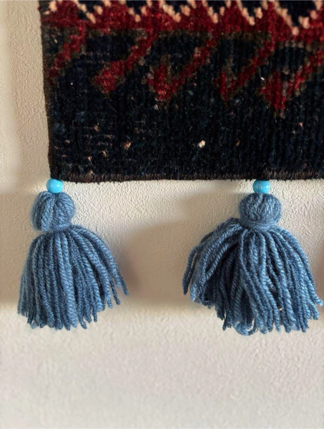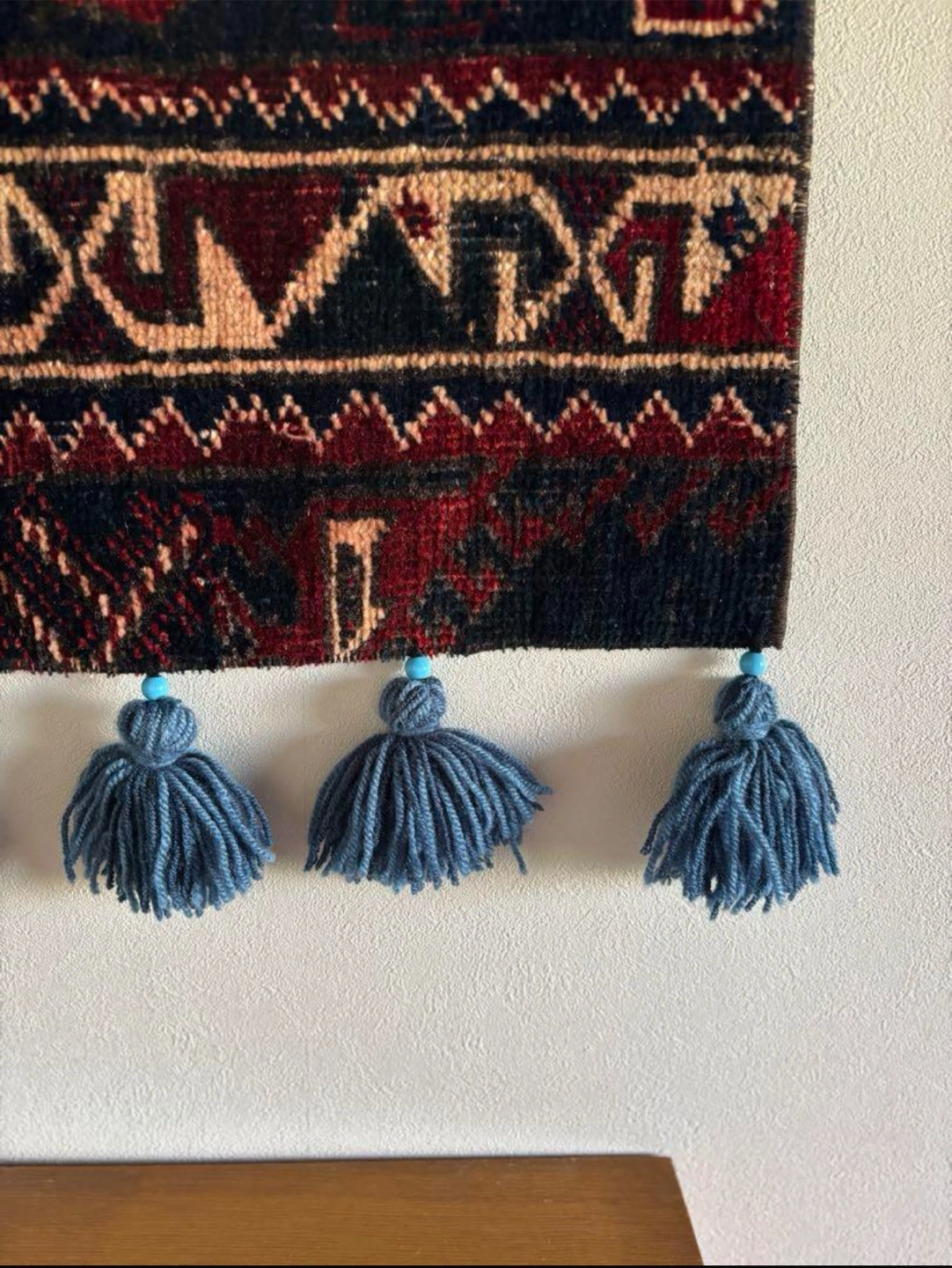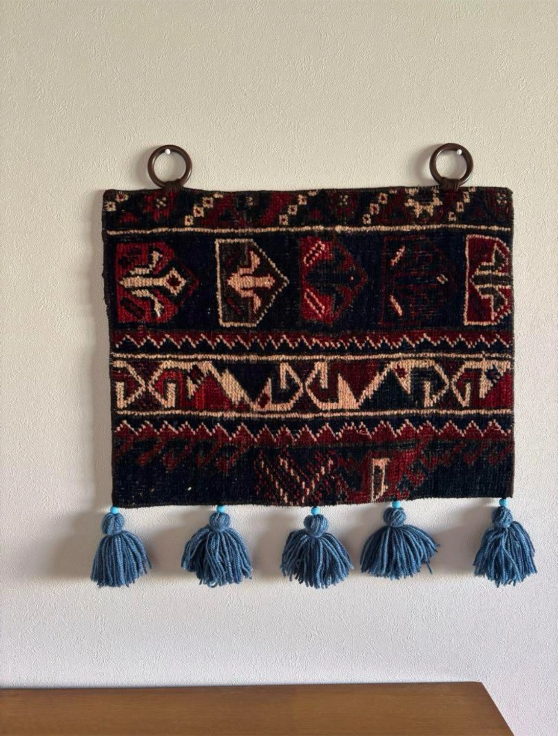 vintageトルコラグ を現地でタペストリーに したものです。 クリーニングされ、とても綺麗な状態です。 紺色ベースに幾何学模様が美しい ちょうど良いサイズ感のタペストリーだと思います! 国:トルコ アナトリア 大きさ:縦39cm (フリンジなし)横50cm