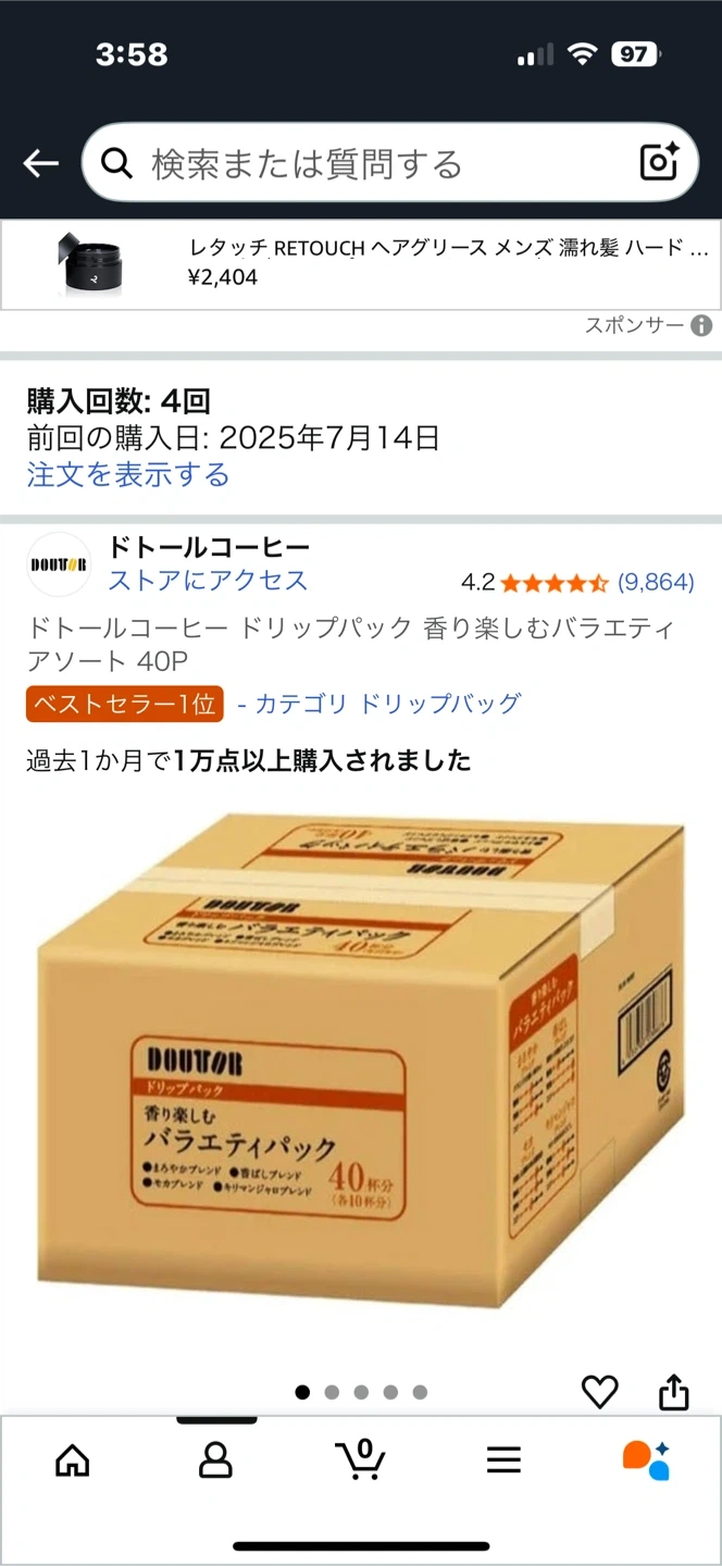 【注意】 すぐに売れない場合は友人に譲ることになってます。 この商品ページごと消しますので、 気になる方はお早めにお願いします。 【出品理由】 以下のAmazon & 楽天で買いましたが、 多く買ってしまったので、出品します https://amzn.to/4q7BT2G https://a.r10.to/hNdRty 【状態】 新品です。 【傷や汚れ】 写真を見ていただければわかる様に 目立つ傷・汚れはありませんが 肉眼でじっくり探せば、袋に傷などはあると思います。 神経質な方は購入しないでください。 画像の通り何種類かのコーヒーが合わさって44袋となります。 商品の詳細は以下を確認ください https://amzn.to/4q7BT2G https://a.r10.to/hNdRty ※すり替え、トラブル防止のため、商品発送後のキャンセル、返品は受け付けていません。