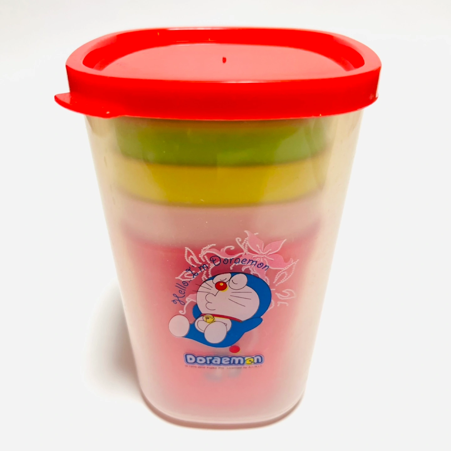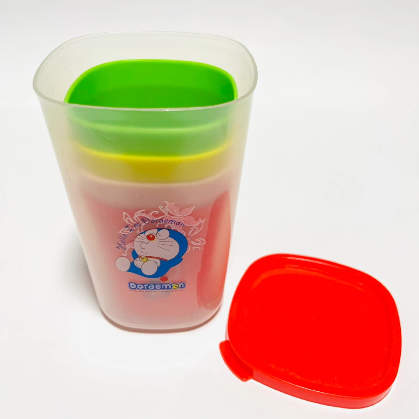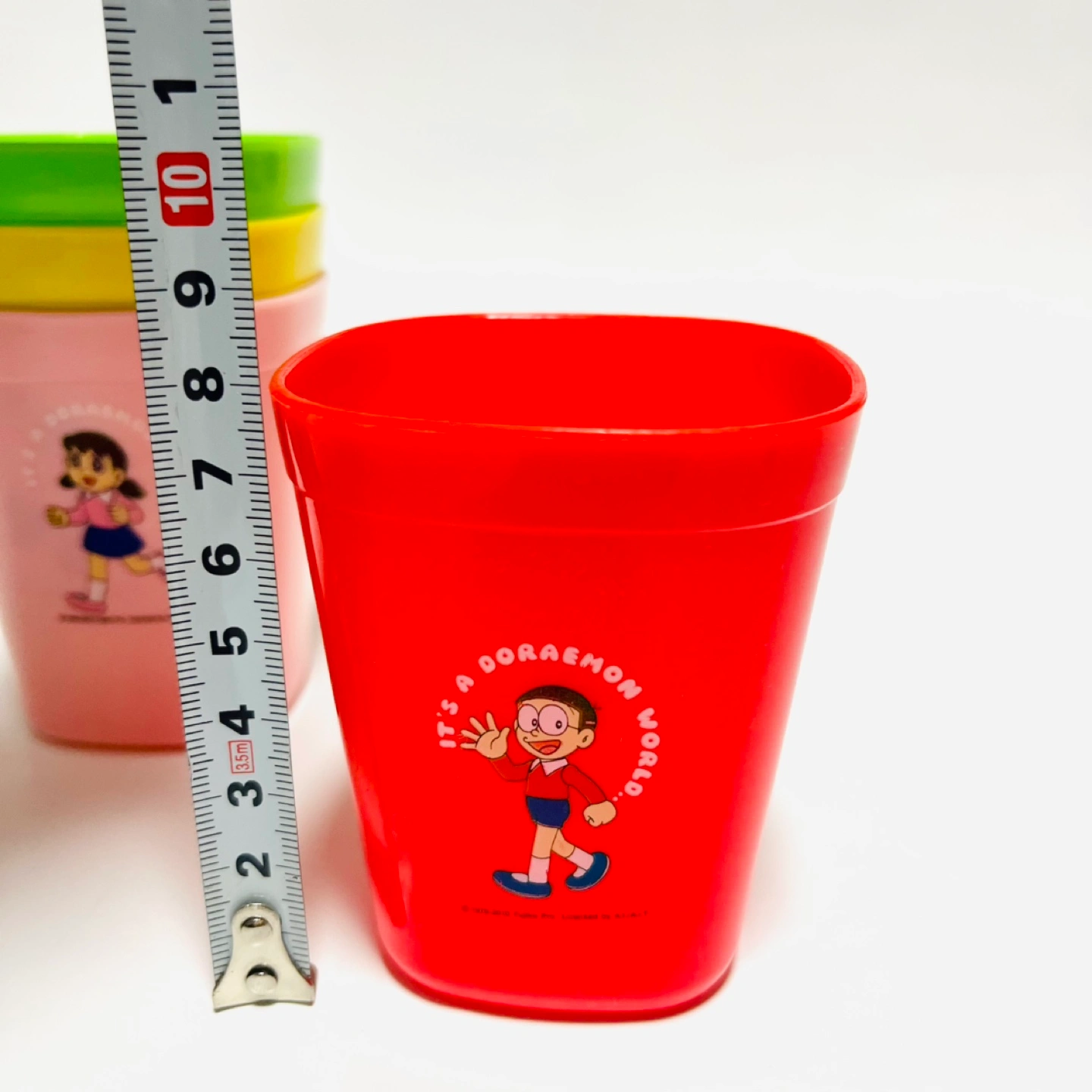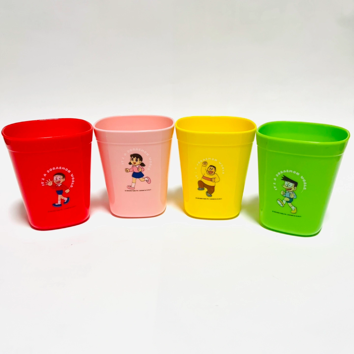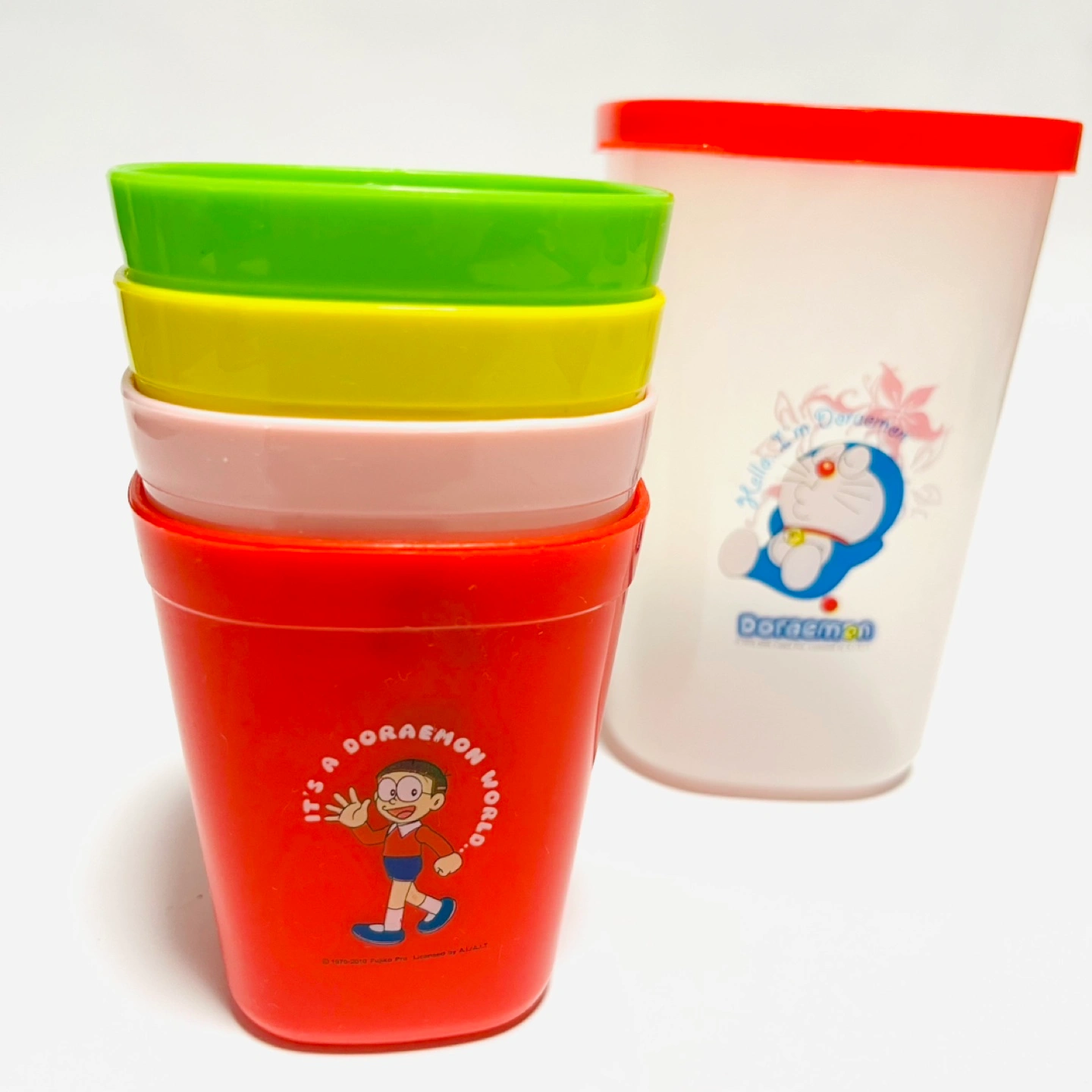 レア品!! 海外でGETしたDORAEMONシリーズです。 日本で被ることはほぼ無し! ドラえもんのプラスチックコップ4色セットです。 プラスチック製で割れないため、ご自宅でお子様用に、ピクニックやキャンプやBBQの際に、いろんな用途で使えます♪ スタッキングも可能ですので、収納時にも場所を取りません。 蓋つきの容器は、コップ収納用としても、または保存容器として使用しても良いです◎ 数回使用したのち、保管しておりました。 大きな傷や汚れはありませんが、使用時の小さな擦れなどはあります。 また、もしご希望であれば、写真7〜8枚目のお皿1枚も併せてお譲りします。 こちらはかなり使用感があるので無料でお付けしますが、不要な場合はその旨お知らせください。 ドラえもんお好きな方に、ぜひお譲りしたいです! ご不明点あれば、お知らせください。