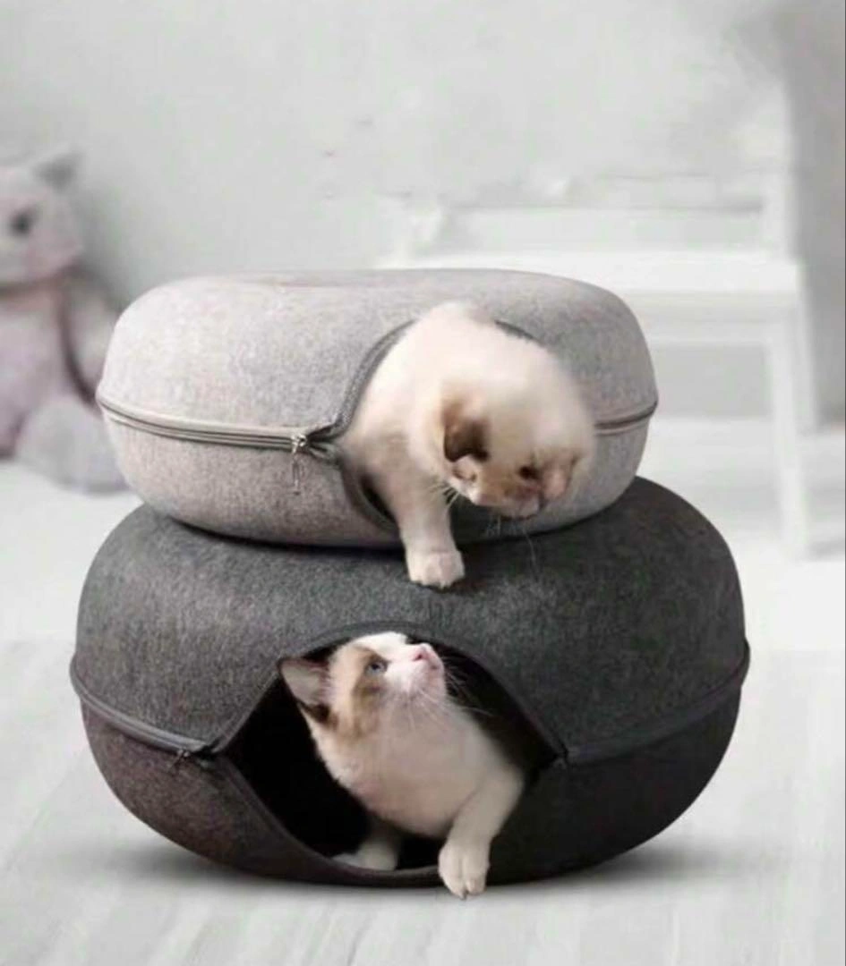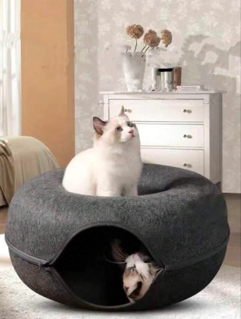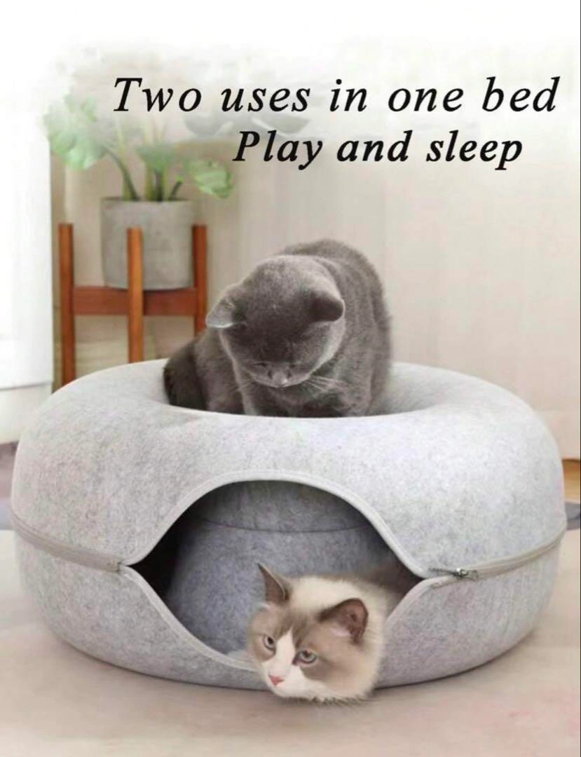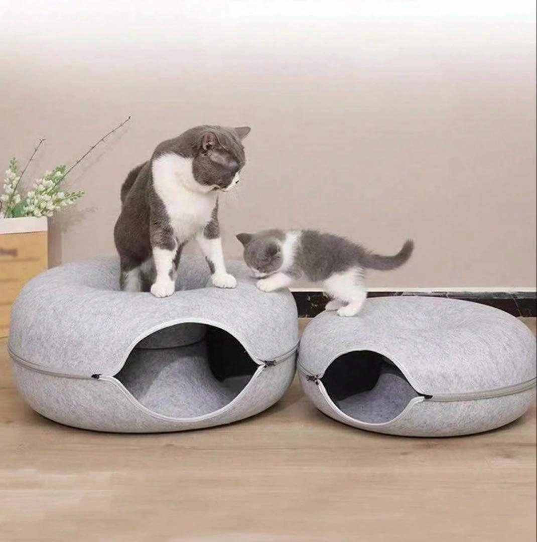 商品名:ドーナツ型キャットトンネル 素材:フェルト カラー :ライトグレー Mサイズ もぐる、寝る、遊ぶ。これ一つでOK! 遊び足りない猫ちゃんにオススメ!ドーナツ型のキャットトンネルです。 ●猫ちゃんの習性に基づいた設計 隠れて身を守るため、獲物を捕らえるため、体温を温存するために、狭い場所を好む猫ちゃんの習性をもとにデザインされています。 ●セパレートタイプ ファスナー式のセパレート型で、内側の掃除も楽々できます。暑い季節には天井を外して、オープンで使うこともできます。 ●手洗いOKのフェルト製 汚れたところは手洗いで洗濯ができるので、いつでも清潔です。寒い季節でも猫ちゃんが嬉しい、あたたかいフェルト製です。 ●シンプル&かわいい デザイン コロンとしたドーナツ形状が可愛く、シンプルなデザインでインテリアの邪魔をしません。使わない時はファスナーを外し、重ねてコンパクトに収納できます。 ※梱包資材削減の為、ダンボールは使用せずに緩衝材に包んだ状態でお届けします。 ⚠️小さめに折りたたんで発送します