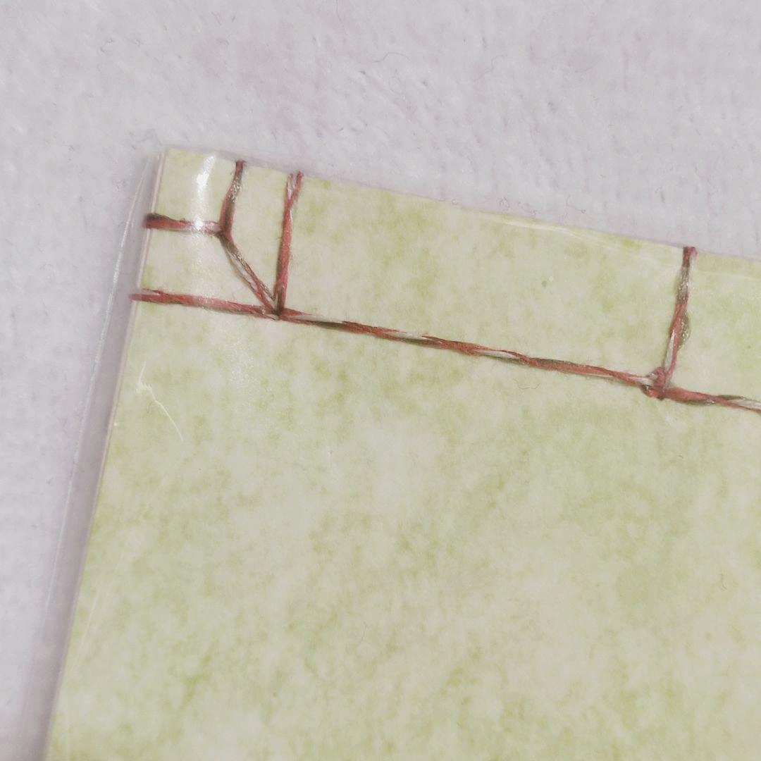 ドールオーナーさんとドールさんおそろい和綴じノートセット 小 表紙用紙→ グッピーラップ グリーン 本文用紙→ 桜色 綴じ方→ 康煕綴じ サイズ→ オーナーさん用 A6(文庫本サイズ) 高級感のある大理石調の不規則模様紙で、穏やかな模様がとてもきれいで可愛いです。 ミニチュアアイテムとしても。 丁寧に製作しておりますが、ハンドメイド作品のため、個体差があります。お届けした作品を気に入っていただけますと幸いです。