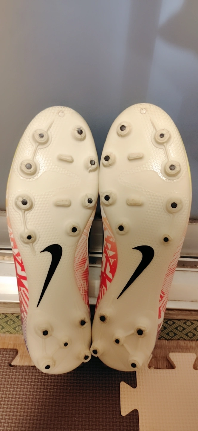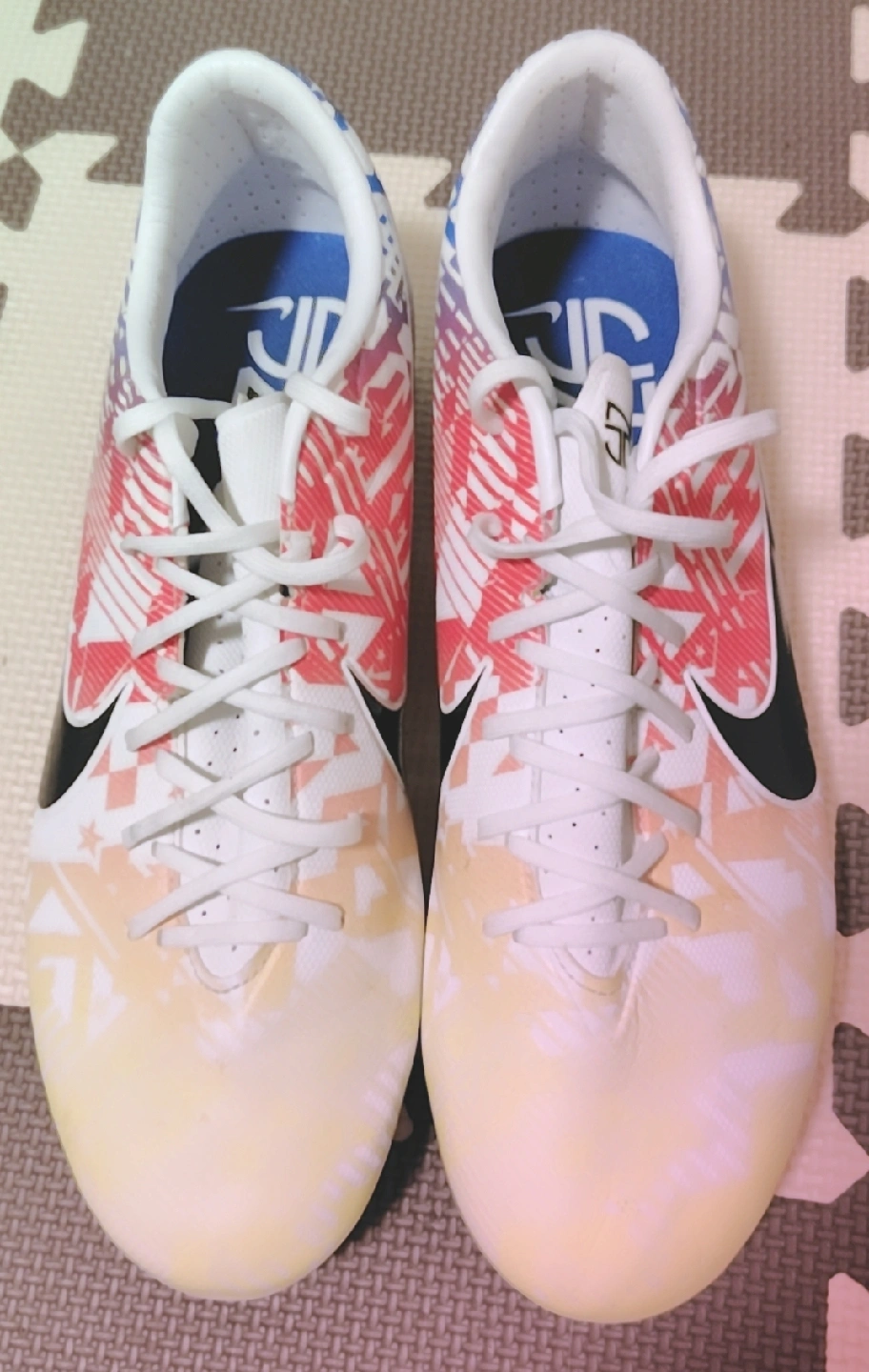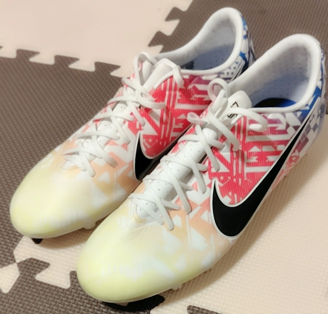 ナイキのサッカースパイクです ・ブランド:ナイキ ・色:白、ピンク、ブルー、イエロー等の多色使い ・サイズ:28cm ・状態:アッパー、シューレース、ポイント共に綺麗です。 ポイントは殆ど減っておりません 美品ですが、あくまでも中古品であることご了承ください おすすめ価格は7000円〜9000円でした どうぞ宜しくお願いいたします