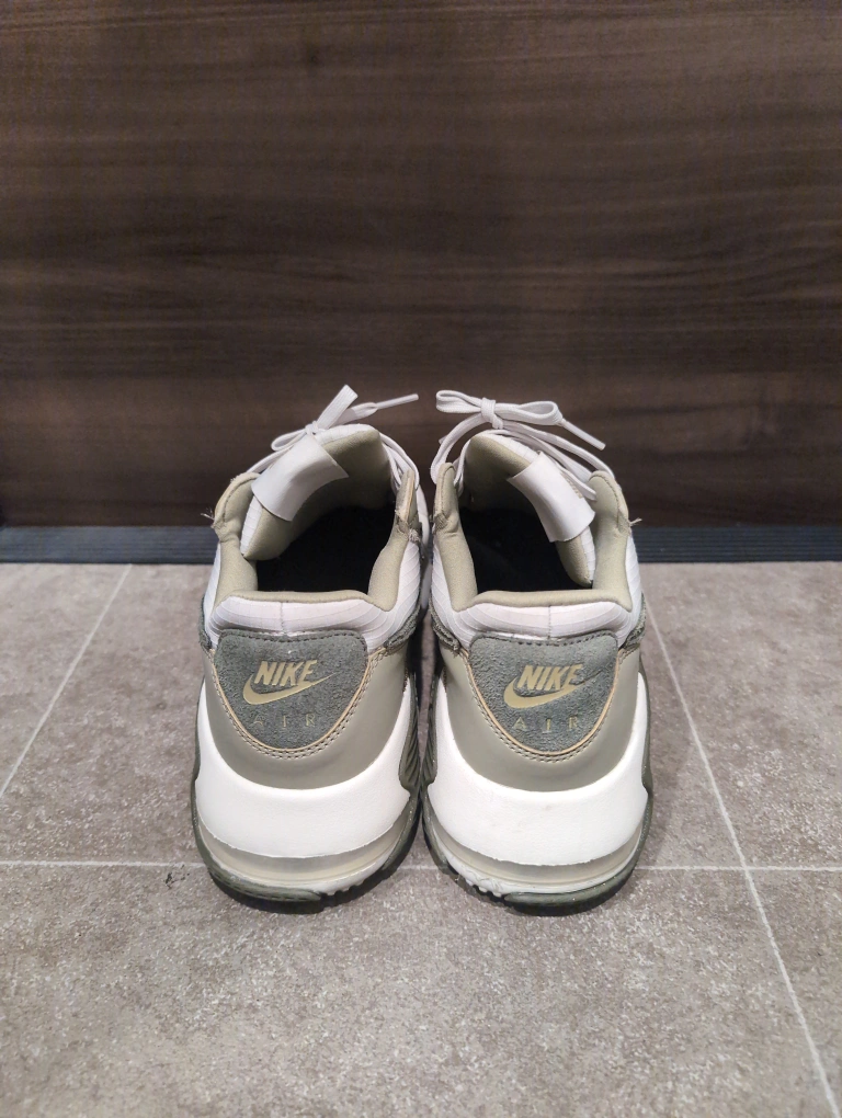 ナイキのAIR MAXスニーカーです ・カラー:ホワイト/グレー ・ブランド:ナイキ ・サイズ:27,5cm ・数回しか履いていないため、使用感はあまりありません。 ・つま先に汚れあり(白ベースのため目立ちますが歯ブラシ等で洗えば落ちるレベルです。) 中古品であることご了承ください