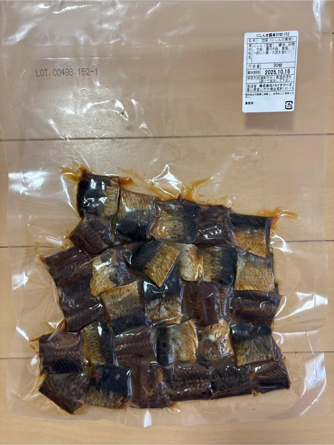 ニシンの甘露煮です。 ・名称:甘露煮(ニシンの煮物) ・内容量:30切れ ・賞味期限:2025.10.15 頂き物で未開封ですが、食品なので気にならない方に 賞味期限が近いです。