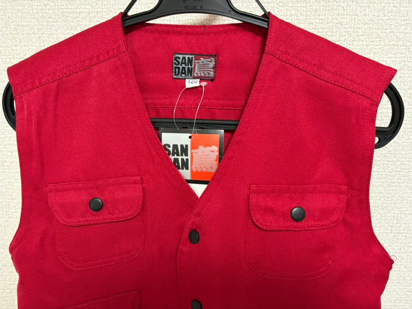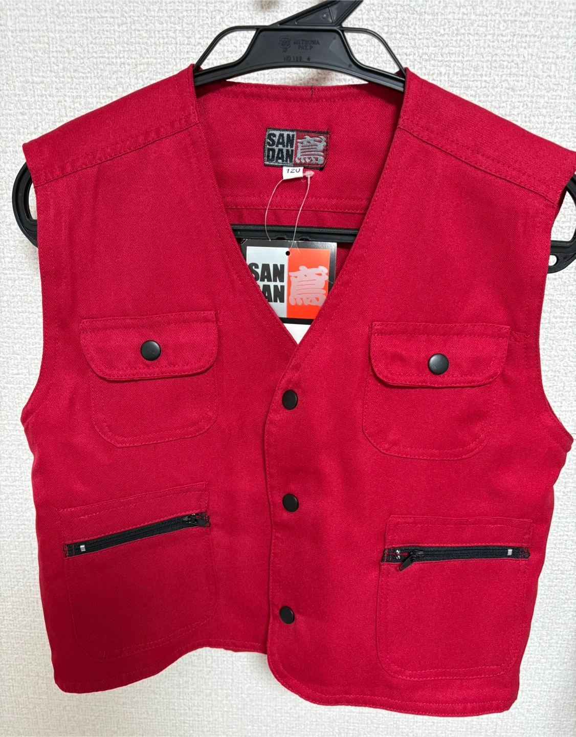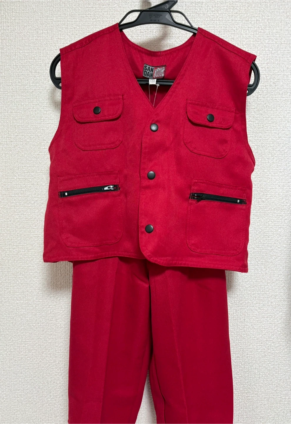 赤色のSANDAN鳶120サイズのニッカポッカ ベストとパンツのセット。 サイズ: 120 色: 赤 スタイル: ベストとパンツのセット ポケット数: 前面に4つのポケット(ファスナー付き2つ) お子様の仮装などにいかがでしょうか。 【状態】 未使用品 自宅保管品であることご了承ください。