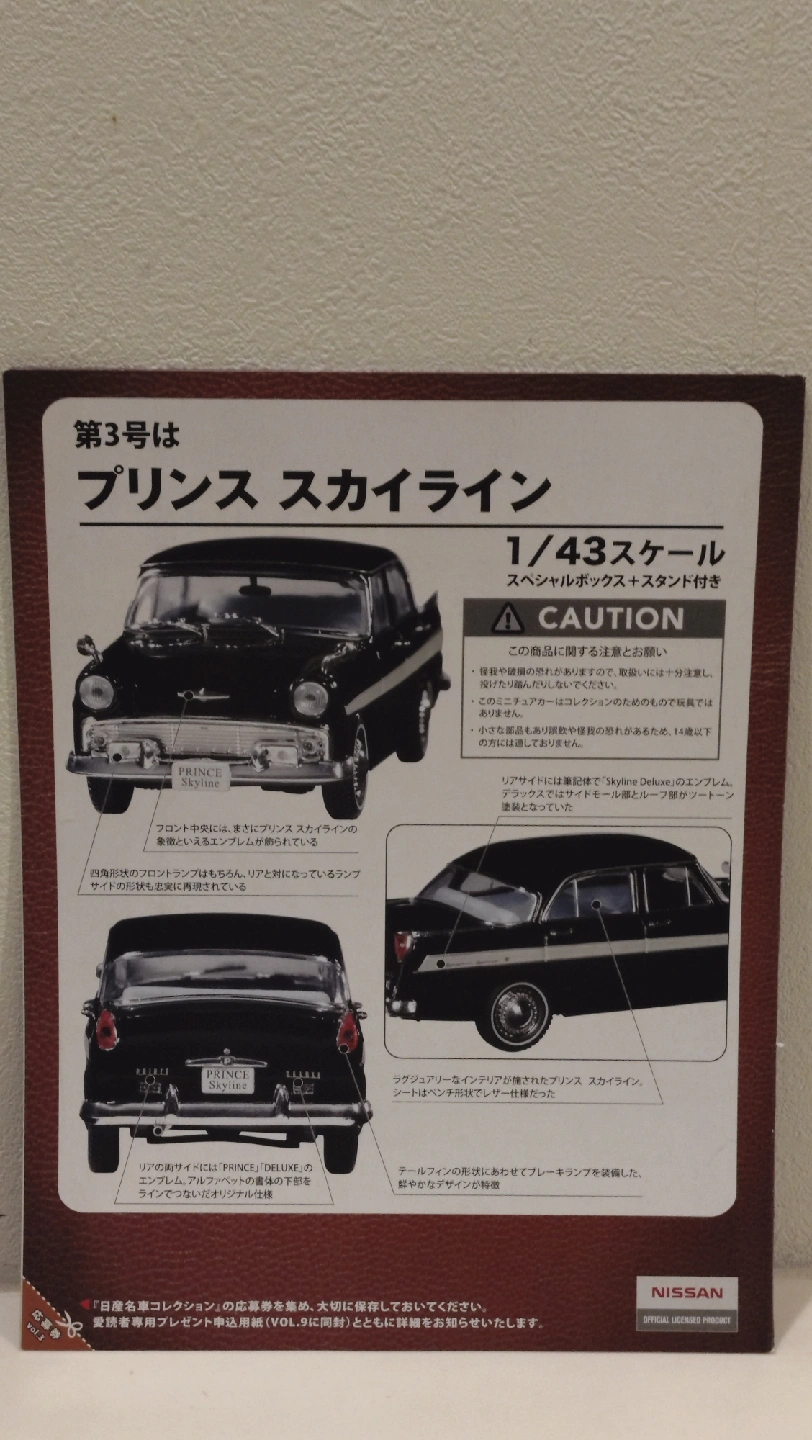 ニッサンプリンススカイラインの1/43スケールモデルです 【情報】 ブランド:ニッサン 商品名:プリンススカイライン スケール:1/43 コレクションボックス付 未使用未開封