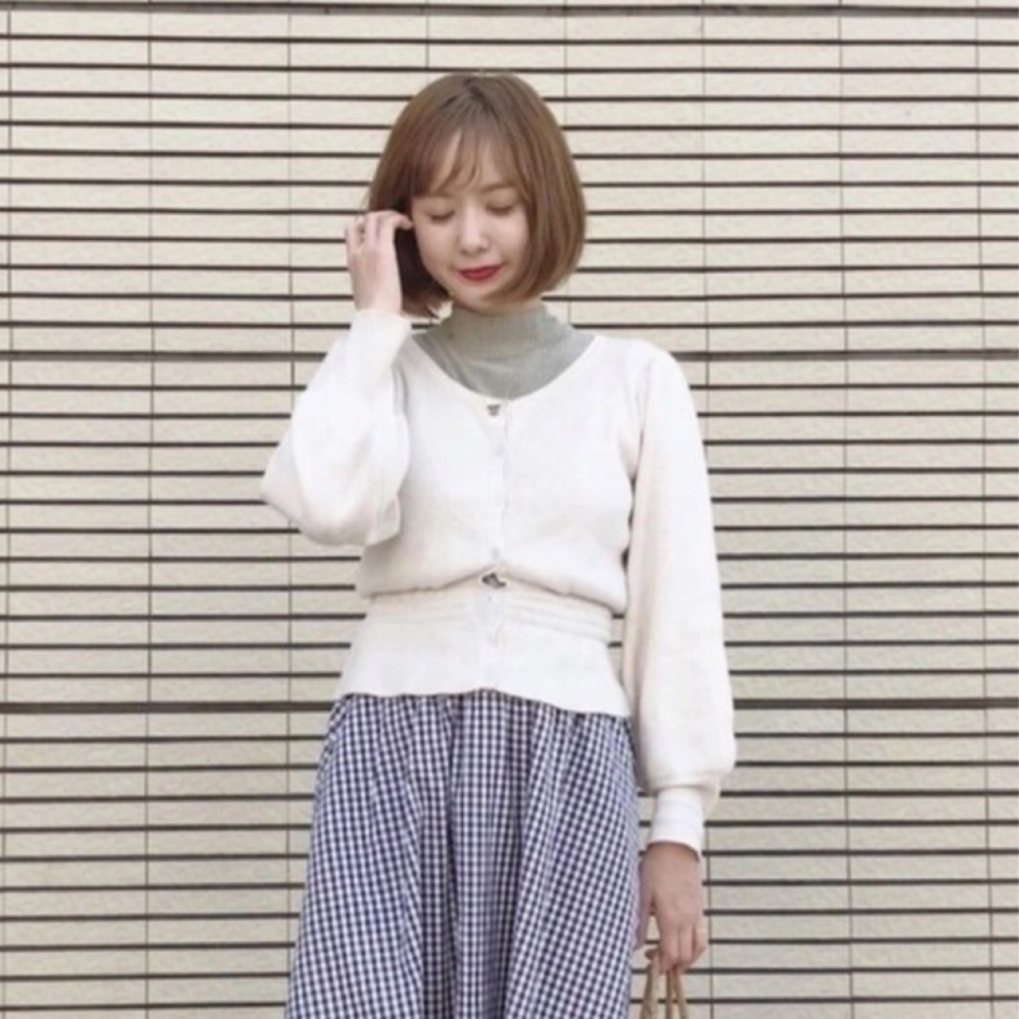 韓国 ACHA ソフトコットン ライン Vネック ニット