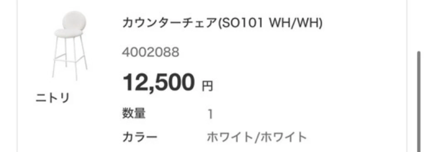 ホワイトのカウンターチェア、シンプルでスタイリッシュなデザイン。 - タイプ: カウンターチェア - ブランド: ニトリ - モデル名: SO101 WH/WH - カラー: ホワイト - 価格: 550円(自宅まで取りに来ていただける方)  ※場所:二子玉川駅近く ご覧いただきありがとうございます。