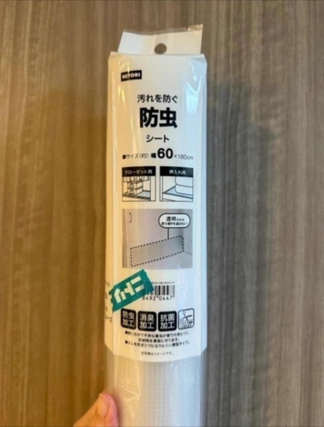 あたたかさ・ブランド:ニトリ ・防虫シート ・サイズ(約):幅60×180cm ・クローゼット用、押入れ用 引っ越しの時に購入したのに使わなかったので 安く断捨離します。 販売価格999円(税込)