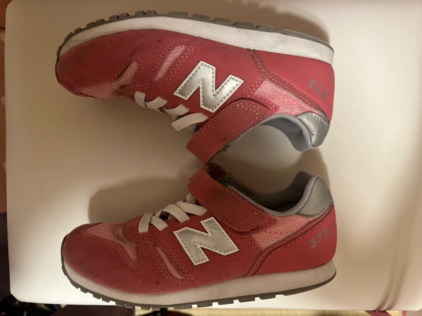 サイズアウトのため出品します。 学校用や公園用等まだまだ履けます。 中敷はダメになってしまったので破棄しました。100均などの中敷を入れて履いて下さる方がいましたら、ぜひ。 ・ブランド:ニューバランス ・型番:373 ・カラー:ピンク ・サイズ:19.5cm ・マジックテープ ・使用感あり、箱無し ・ホームクリーニング済み お取引は平日午前中〜昼過ぎ、綱島駅周辺〜アピタテラス横浜綱島あたりが助かります。 その他の場所や時間帯はご相談下さい。 (仕事で上記でも難しい日もあります) よろしくお願いいたします。