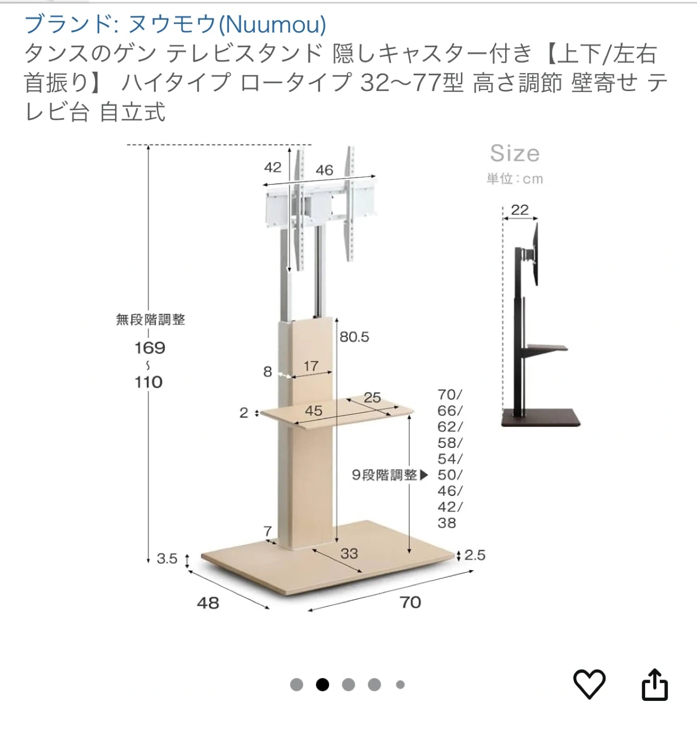 ホーム港区のフリマ港区の家電・デジタル白金の家電・デジタルヌウモウ テレビスタンド 32~77型 FM6625恵理白金36.9℃あたたかさヌウモウ テレビスタンド 32~77型 FM6625家電・デジタル · 8,580円ヌウモウのテレビスタンドです。 【情報】 ブランド:ヌウモウ 対応テレビサイズ:32~77型 モデル:FM6625 耐荷重:40kg 【サイズ】 VESA最大値:600mm×400mm 高さ:110~169cm 【状態】 使用感少なめ 中古品であることご了承ください商品の状態新品・未使用チャット0·お気に入り0·