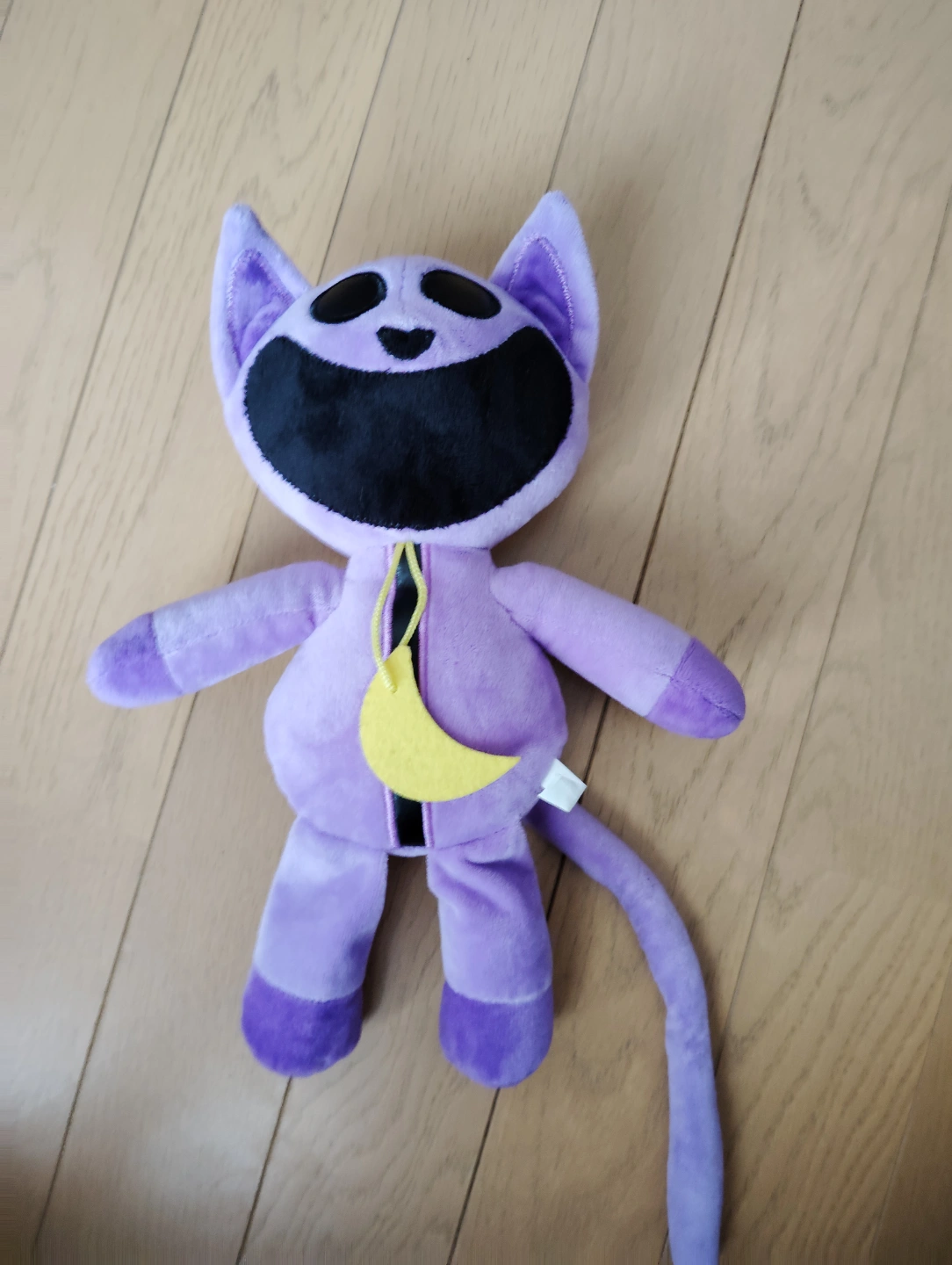 あたたかさ・ぬいぐるみ ・ネコのデザイン ・カラー:紫色、黒色、黄色 ・しっぽ付き
