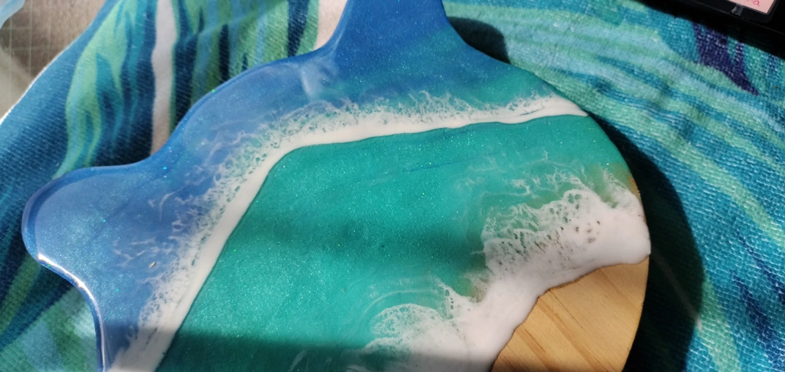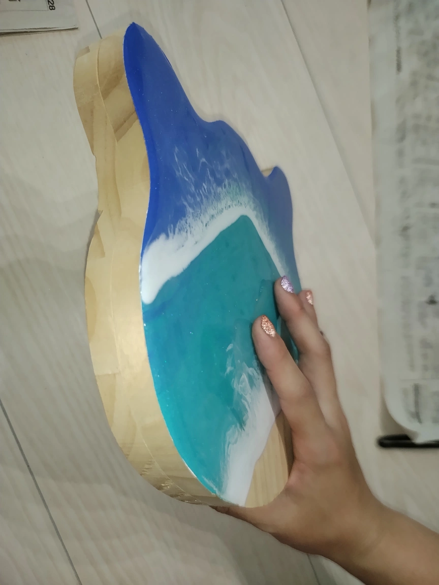 超大型 巨大サイズ オーシャンレジン立て掛けボード アート作品ハンドメイド お洒落インテリア グラデーション宮古ブルー