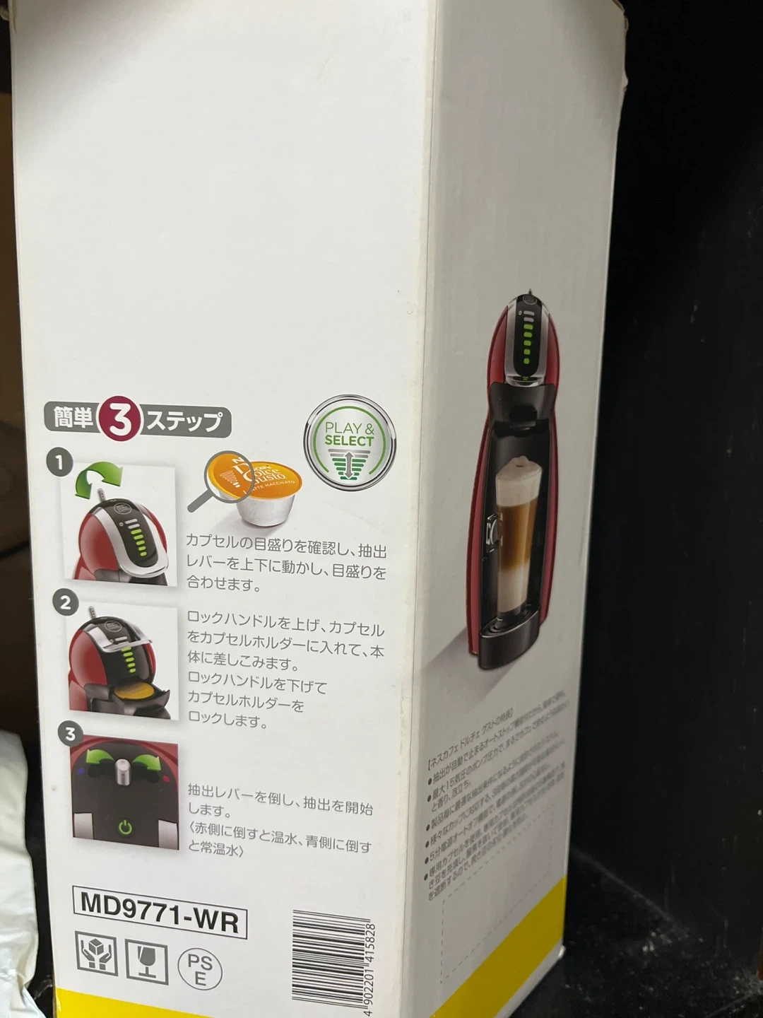ネスレ ドルチェグスト MD9771-WRです 【情報】 ブランド:ネスレ 商品名:ドルチェグスト 型番:MD9771-WR 【付属品】 マシン本体、本体取扱説明書(保証書付き) 中古品であることご了承ください かなり前に、スターバックスのカプセルが発売される前迄の半年位使用してました。自宅マンションはコーヒーの粉は使用後はダスト室に捨てる為、面倒になり使用しなくなりました。 付属品のマグカップ(陶器?)などもあり、箱に上手く梱包出来ないため、2つにして運びます。 重たいので、何処かJR線の駅など便利かと思います。