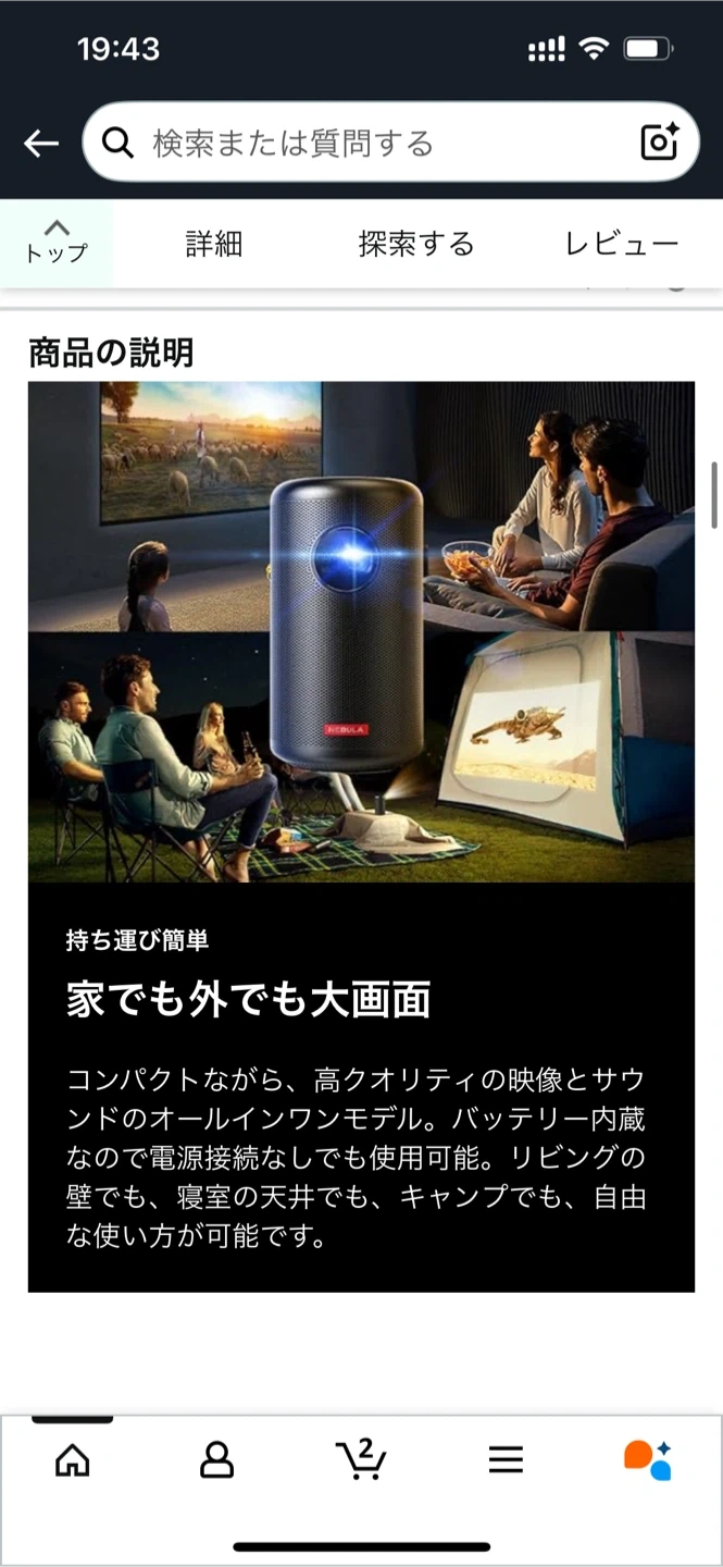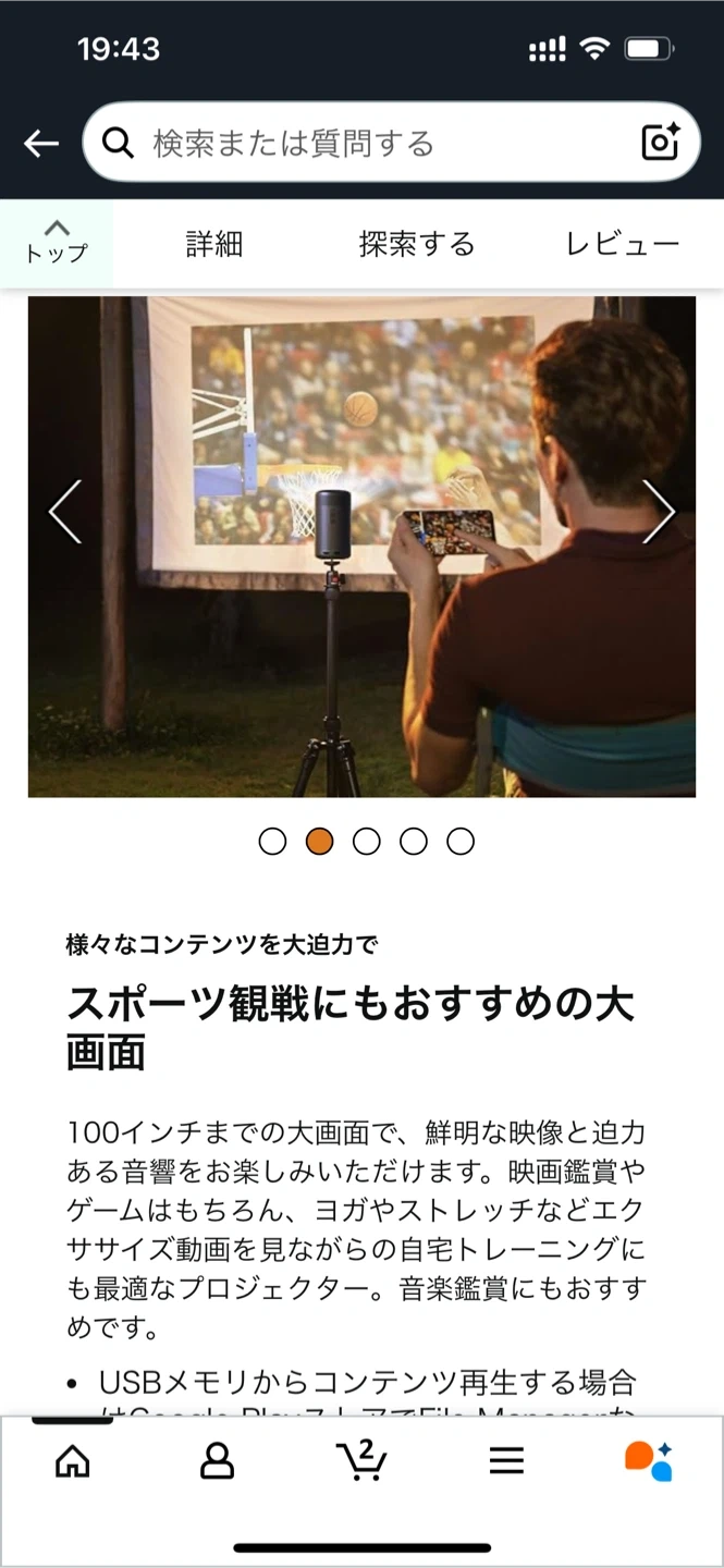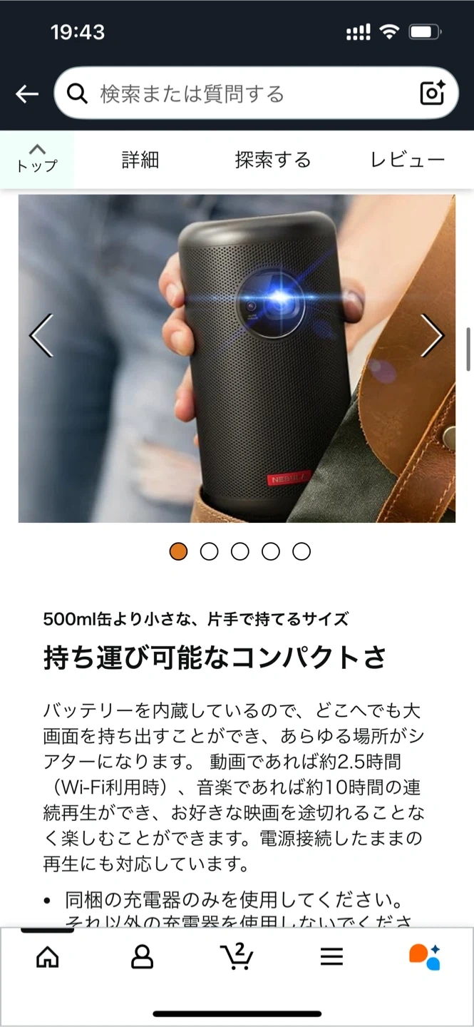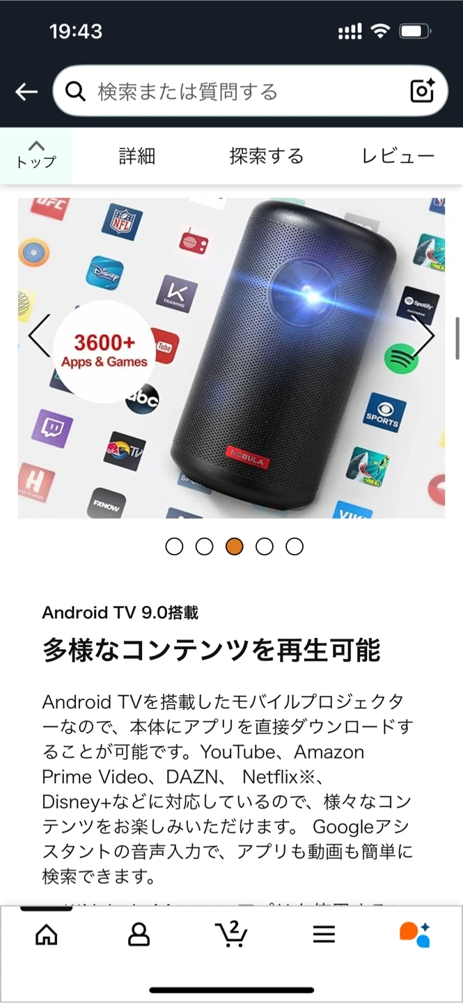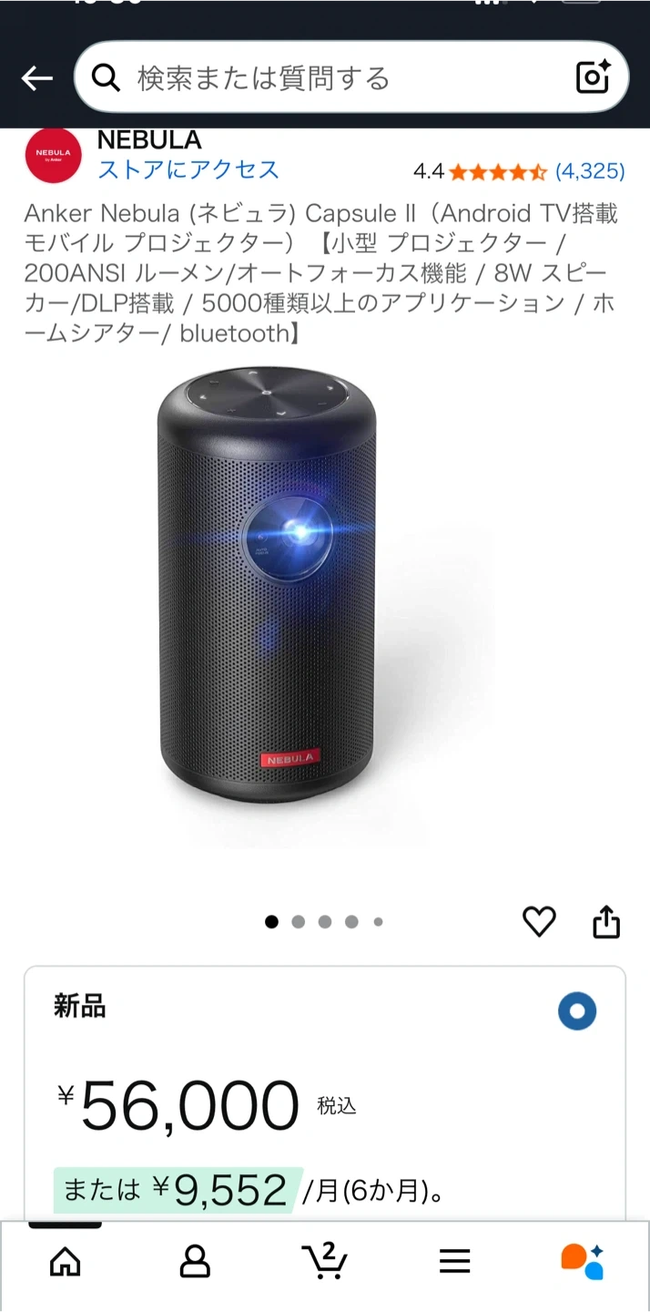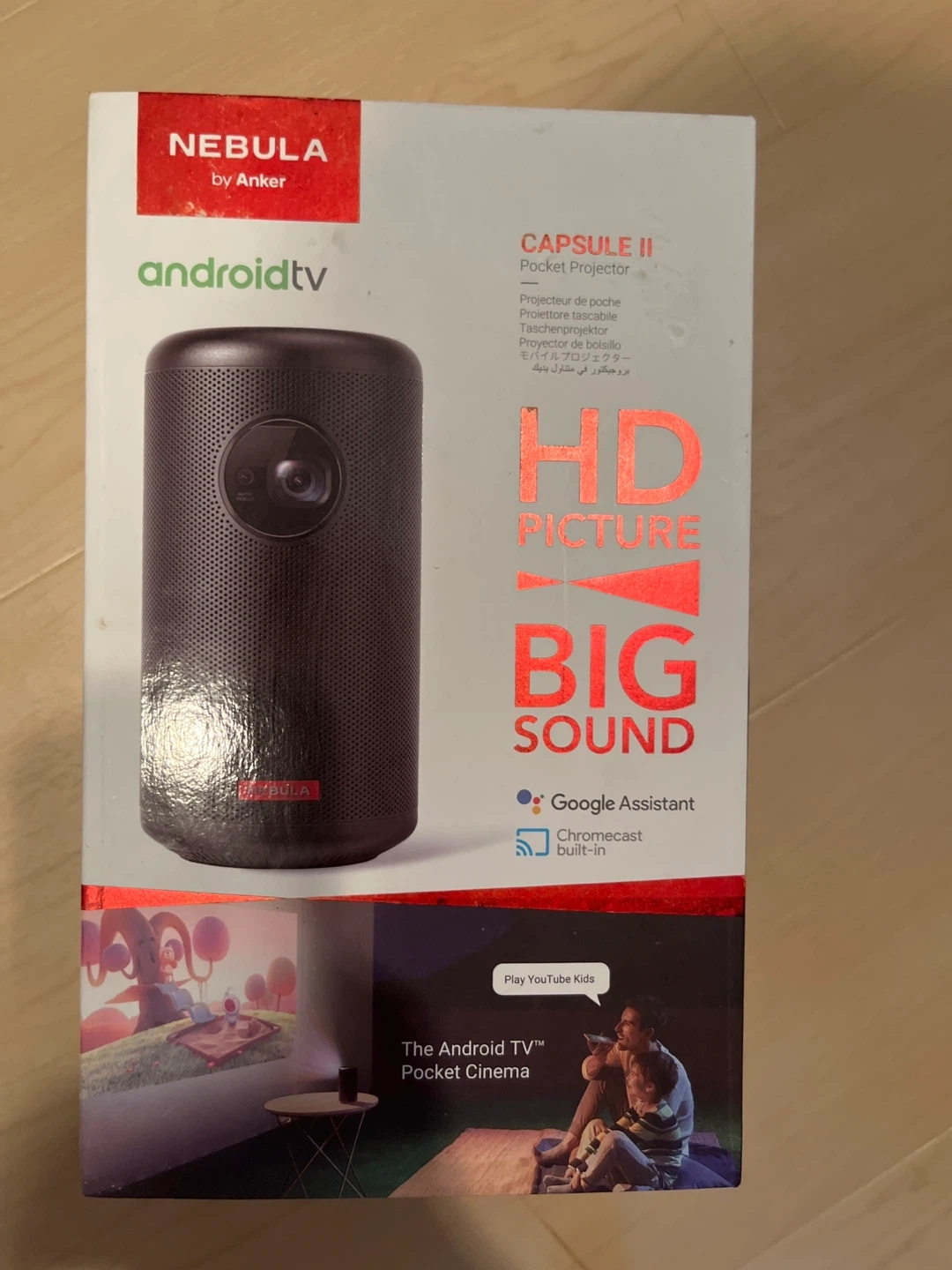 ネビュラのモバイルプロジェクターです。 Android TV 搭載したモバイルプロジェクター で、YouTube等アプリを通じて動画をお楽しみいただけます。 【情報】 ブランド:ネビュラ 種類:モバイルプロジェクター モデル:Capsule II Bluetooth:2.4GHz Wi-fi :2.4GHz/5GHz 【状態】 目立った傷や汚れなし 【付属品】 箱、充電器、説明書あり リモコンがなくなったが、本体の上のボタンで操作できます。 HDMIケーブルおまけをお付けいたします。HDMI(タイプA)に対応のAV機器、ゲーム機、パソコンなどプロジェクターに接続可能です。 あくまで素人保管の中古品ので、予めご理解の上で、ご購入ください。 他サイトでも出品中です。他で売れた場合、急に削除しますので、ご了承ください。 受け渡し場所は浅草駅、今戸付近希望です。 ご不明点等ございましたらご連絡ください。 ご覧いただきありがとうございました。