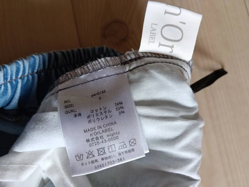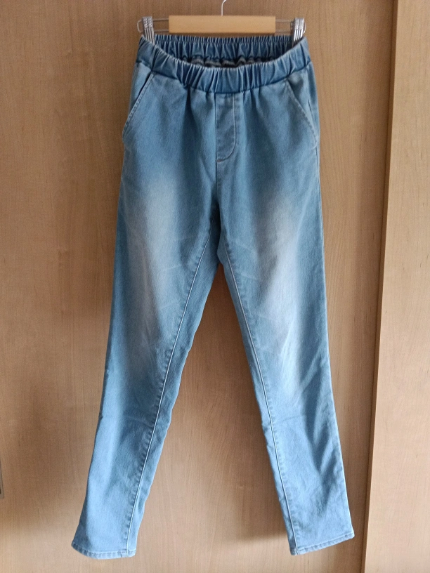 デニムパンツです ・ブランド: (n'Or LABEL) ・サイズ:S ・素材:コットン74%、ポリエステル23%、ポリウレタン3% ・色:ライトブルー ・ウエストゴム ・中国製 中古品であることご了承ください ▪️股下…74cm ▪️裏がパウダー調になっており、ふんわり暖かいです