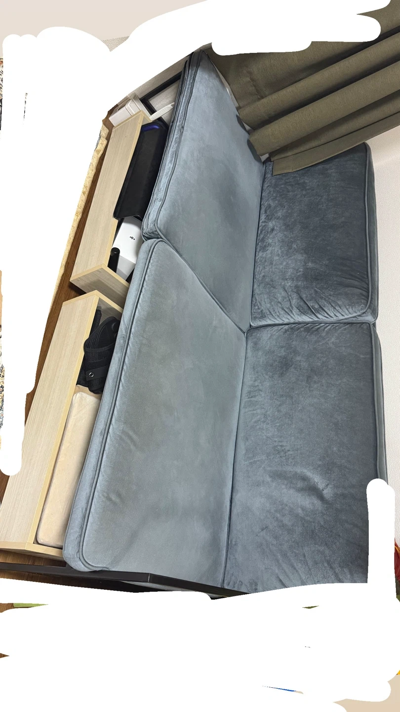 画像を見る限りNOCEのソファと同型だと思います。 (譲っていただいたものなので確証はないですが) 実物3枚目以降 いろんなものが写ってしまって見づらくてすいません。 2.5人がけのソファです! アイアンフレームとブルーグレーのベルベットのソファで とってもおしゃれで気に入ってたのですが 子供ができてアイアンフレームが危なそうなので 今回出品させていただきました。 1人がけ用とソファの下のキャスター付き収納も まとめて購入できる方を優先させていただきます。 2.5人がけの方に移動の際タバコの火が落ちてしまい 譲っていただいた時から焦げてしまっていたので そこのシートは前後逆につけてあります! 前後逆につけると穴も隠れるので あまり気にはなりませんでした! 部屋でタバコは吸わないので タバコの匂いなどは特にしないかと思います! 2.5人がけ幅172cm高さ78cm奥行き74.5cm 1人がけ幅62.5cm高さ78cm奥行き74.5cm (素人採寸) ドタキャンしない方 中古品であることを理解していただける方 よろしくお願いします! 取りに来れる方限定。