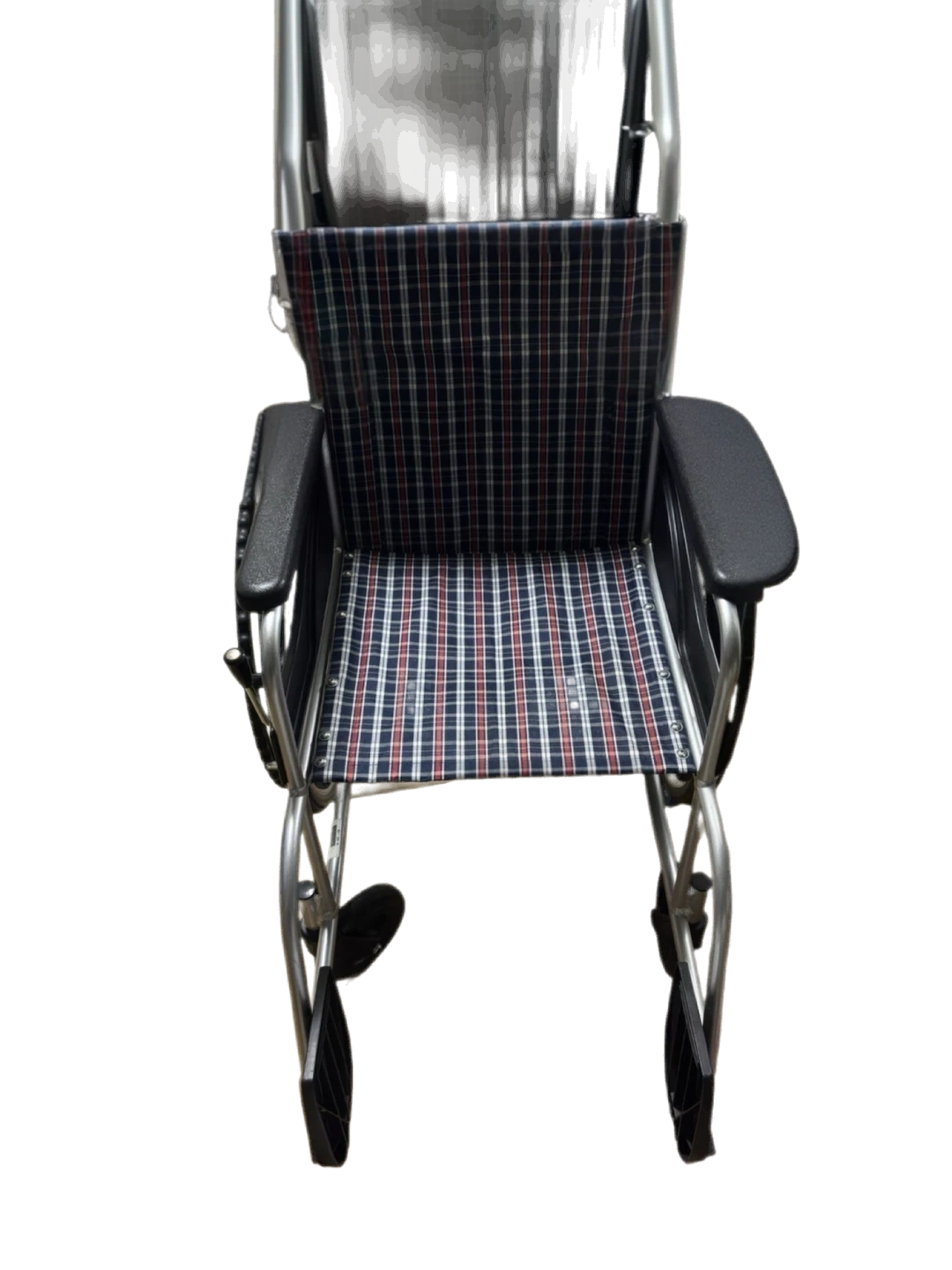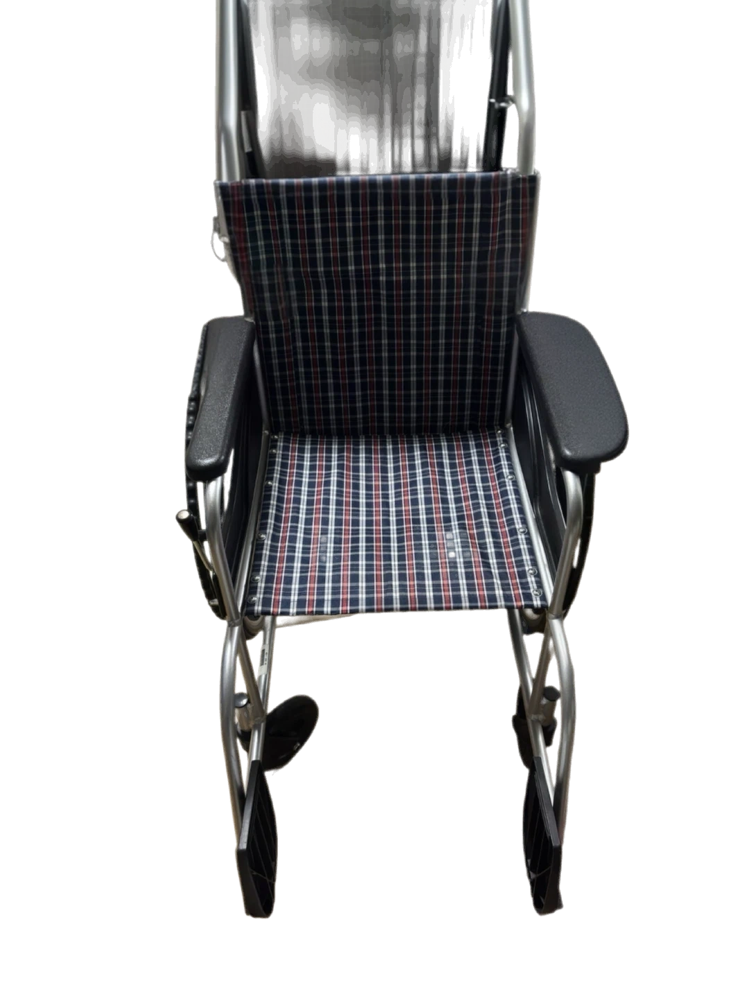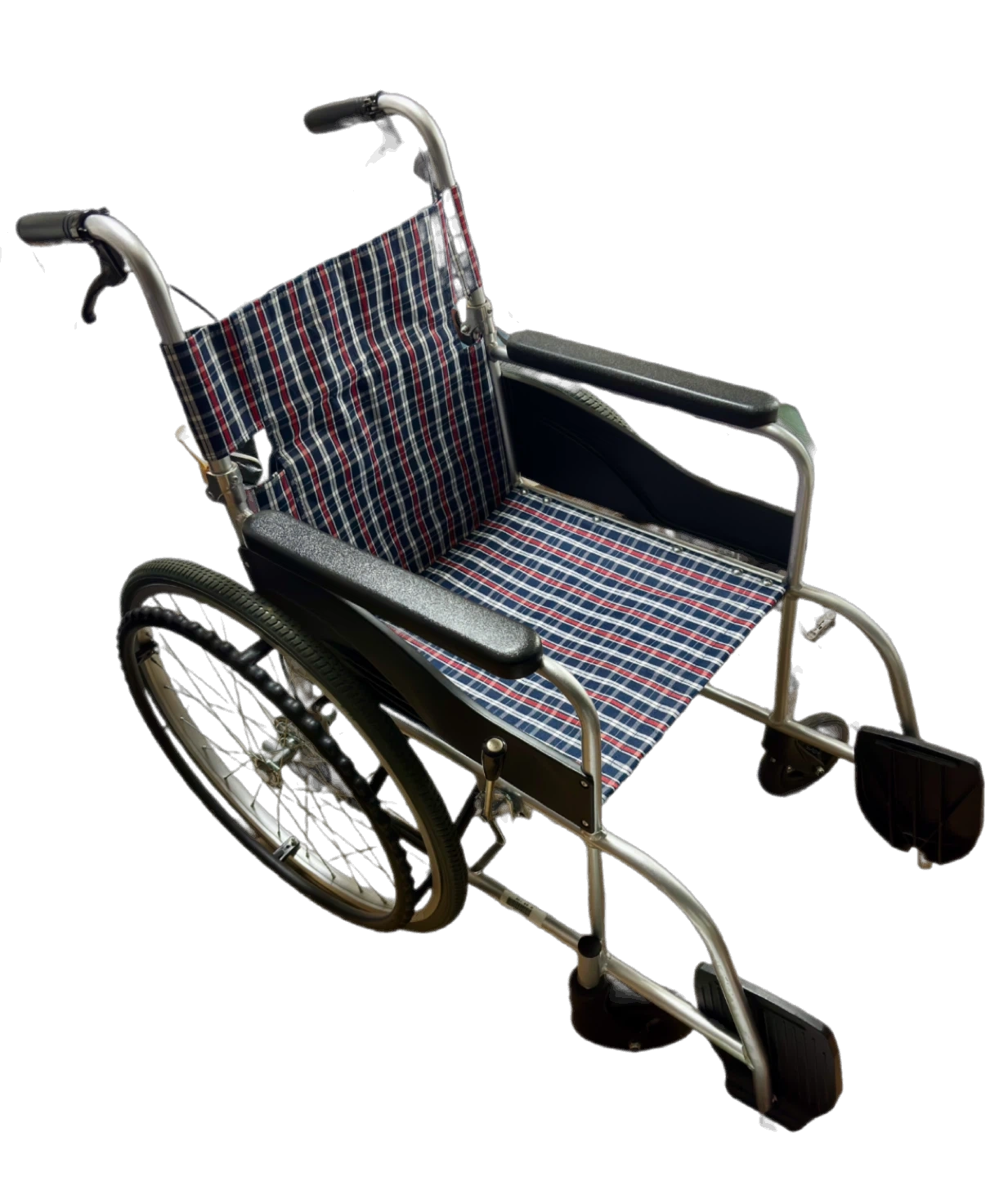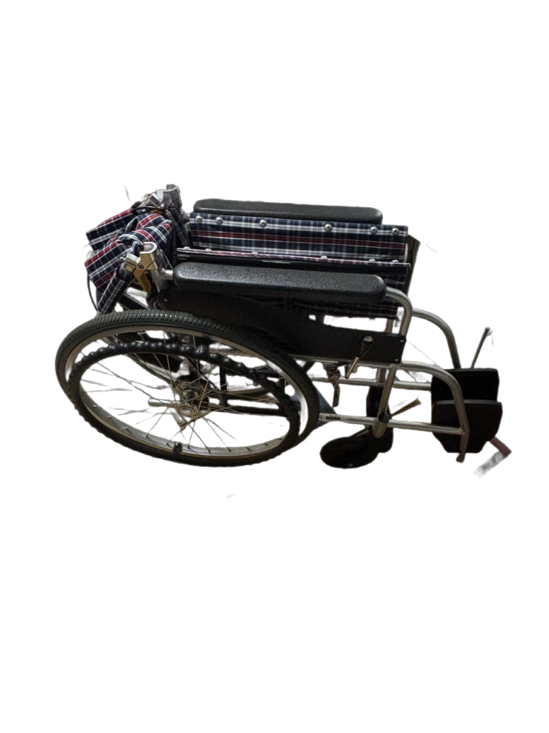 ステンレス製のノーパンクタイヤの自走式車椅子です。 ・ノーパンクタイヤ ・チェック柄 ・ステンレスのシルバーフレーム ・背部にポケット付 ・リユース品のタイヤ交換での購入ですが、月に1度程度しか使っていなかったので、比較的キレイな方だと思いますが、中古品・ランクB程度であること、そちらも私の私感である事をご了承ください。 ですので、神経質な方は購入をご遠慮下さい。 多方面で併売中ですので、在庫確認をお願い致します。