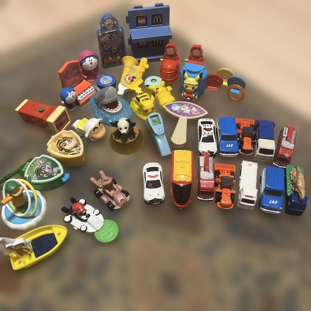 多彩なキャラクターが揃ったハッピーセットのおもちゃセットです。お子様の遊びにいかがでしょうか。 トミカ、プラレールは子供がシールを貼ったものや、シールが紛失して貼っていないものもあります。 ポケモンのうちわは、型紙を捨ててしまいお好きな型紙を入れていただければまたうちわとして使用できるかと思います。 ジョーズの歯が1本埋まって出てこ なくなってしまっています。 ご希望の方はお気軽にご連絡ください。