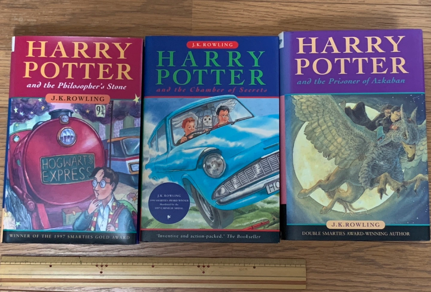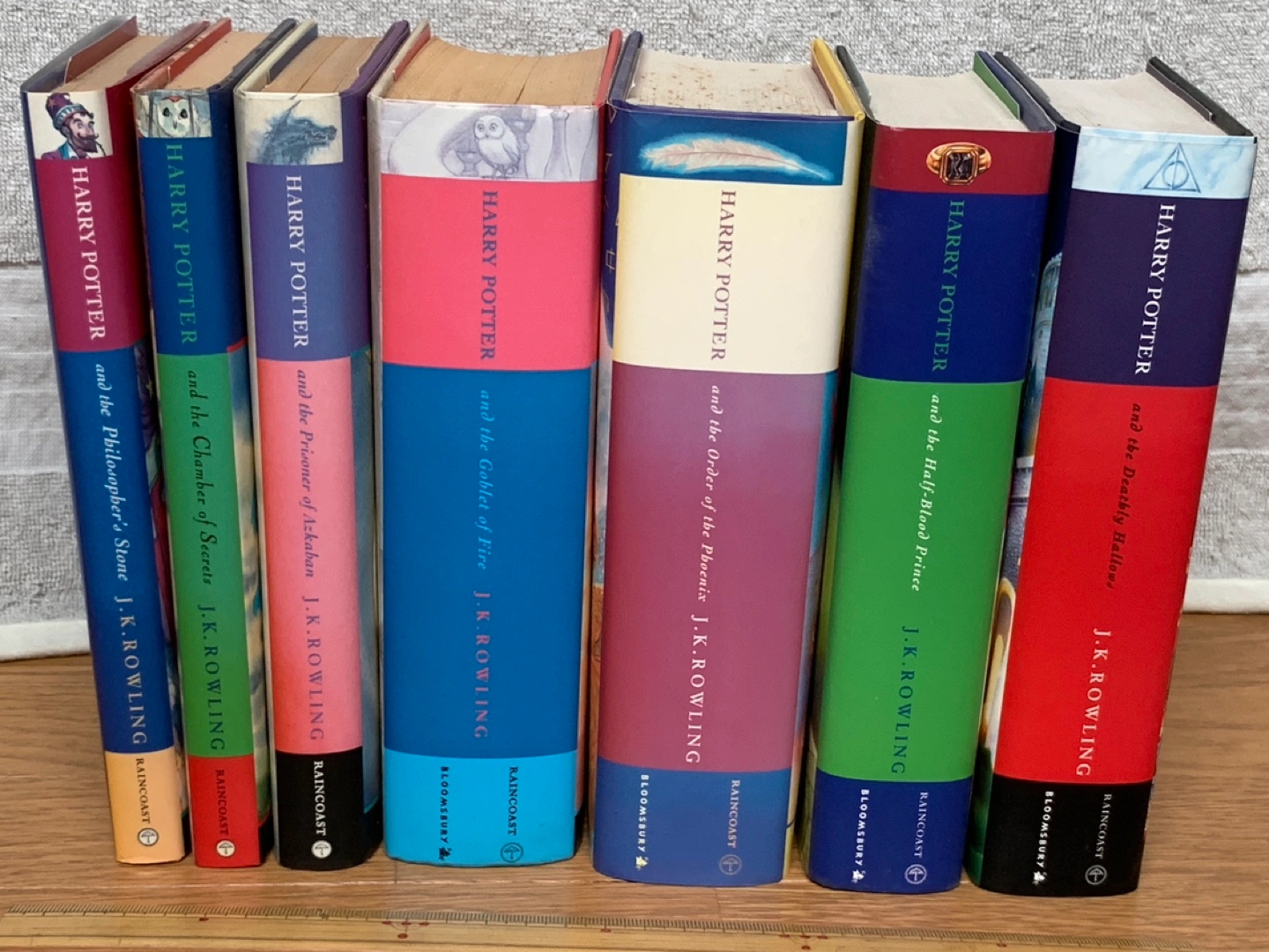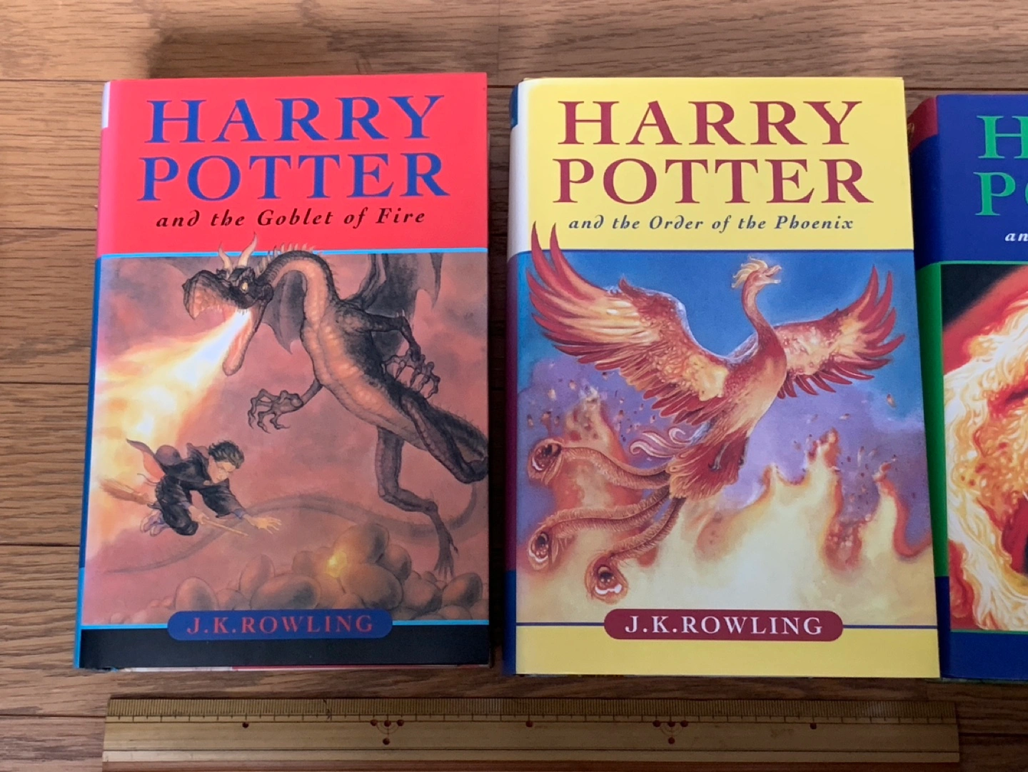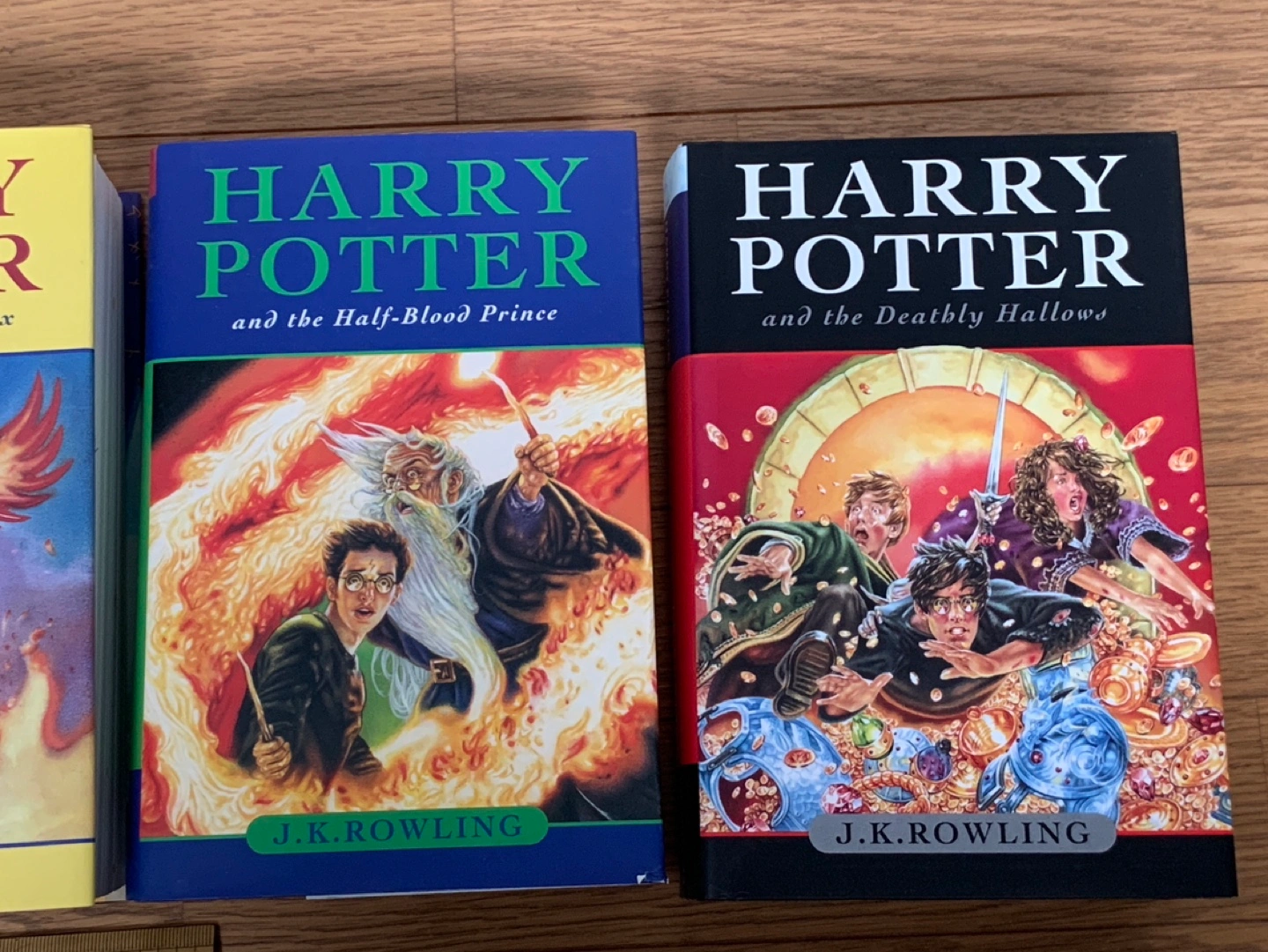 ハリーポッターシリーズです。 本箱に入れていただけで本の上部にシミが出ています。(特に第5巻) ホグワーツの教科書もあります。