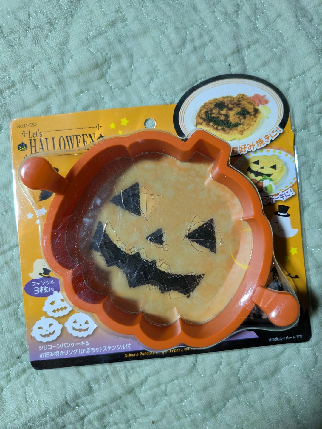 ハロウィンのかぼちゃ型抜きです ・シリコンパンケーキ&お好み焼きリング(かぼちゃ) ・ステンシル3枚付き ・カラー:オレンジ 中古品であることご了承ください 3枚の、ステンシルで、粉砂糖を、振って、浮き上がらせたり、デカプリンに、振って、遊んだり、お子さんとご一緒に、お作りください😊