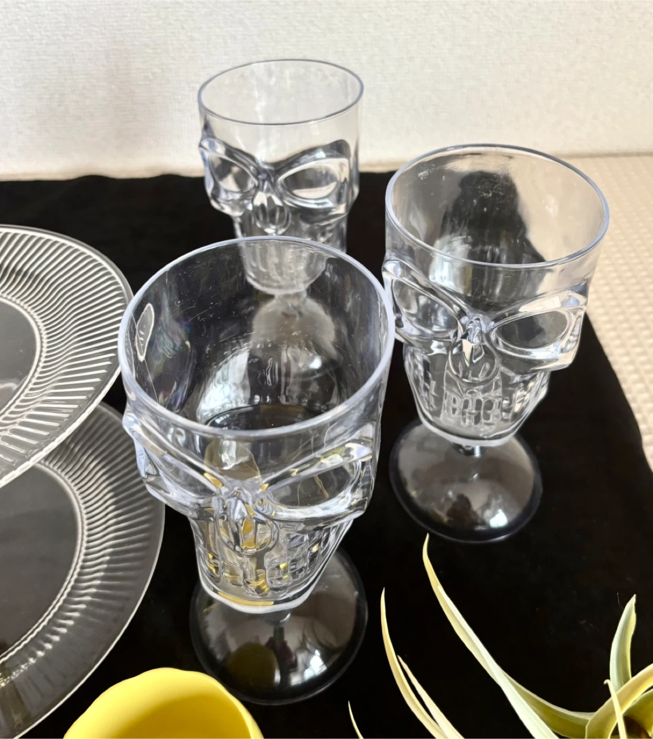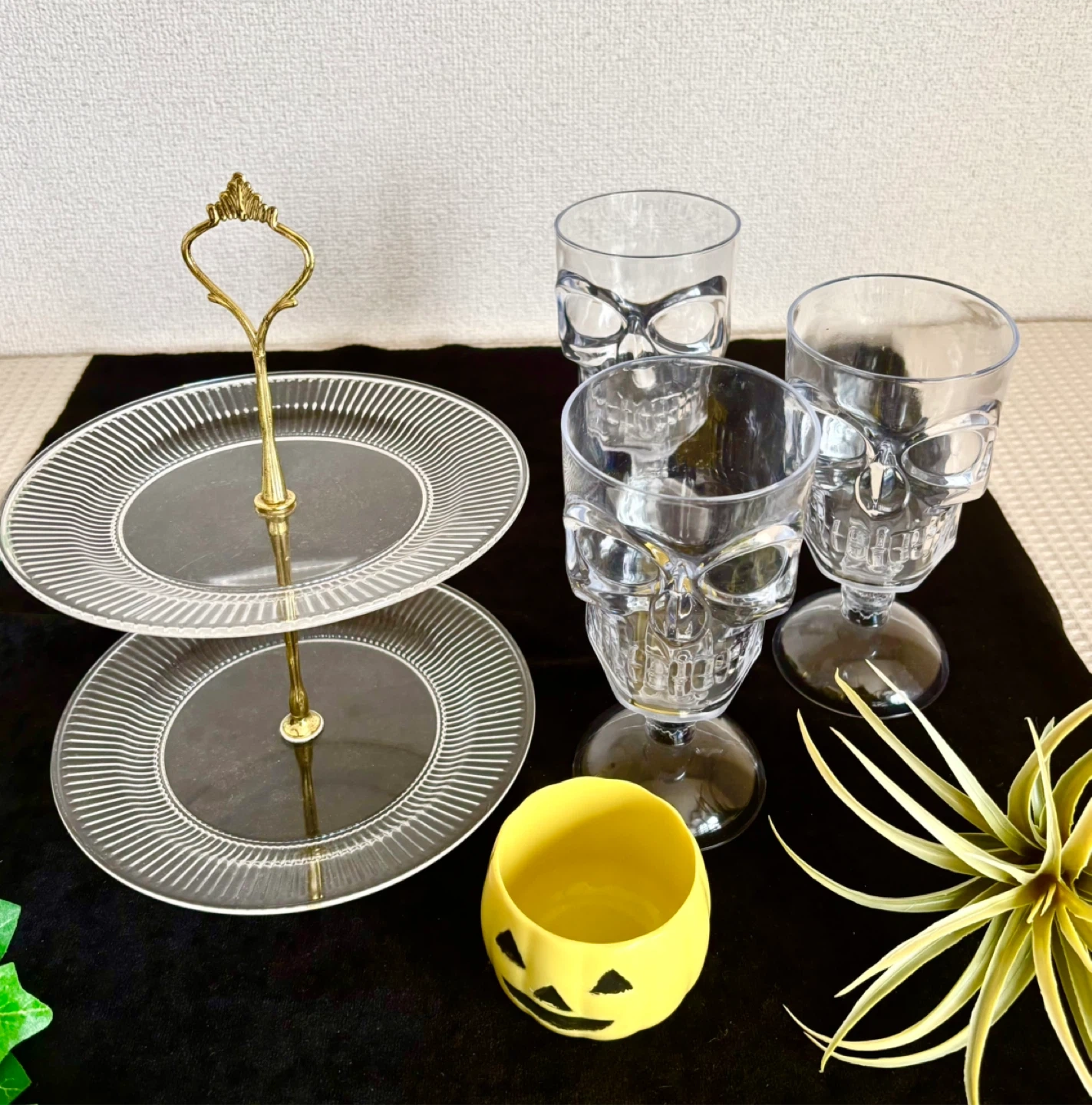 ハロウィンパーティーに最適なスカルグラスとケーキスタンドのセット。パンプキンカップ付 プラスチックでなので、軽くお子様にも持ちやすいかと思います。 - セット内容: スカルグラス3個、ハロウィンカップ1個、2段ケーキスタンド - 素材: プラスチック製 - 色: 透明、パンプキンカップはイエロー - デザイン: スカルデザインのグラス、ハロウィンモチーフのカップ - サイズ: 2段ケーキスタンドの 直径 約18.5cmぐらい 高さ 約24cmぐらい -スカルグラスサイズ 高さ 約16センチぐらい - 用途: ハロウィンパーティー、デコレーション に向いています。 いずれも自宅保管品、中古品になります。細かいキズがあるかと思います。 ご理解ある方にお譲りします。 葉っぱの造花は撮影小物です、付属しません。 ご覧いただきありがとうございます。 ハロウィン #パーティー #イベント #食器 #アフタヌーンティー #2段プレート #ドクロ #スカル #髑髏 #ワイングラス