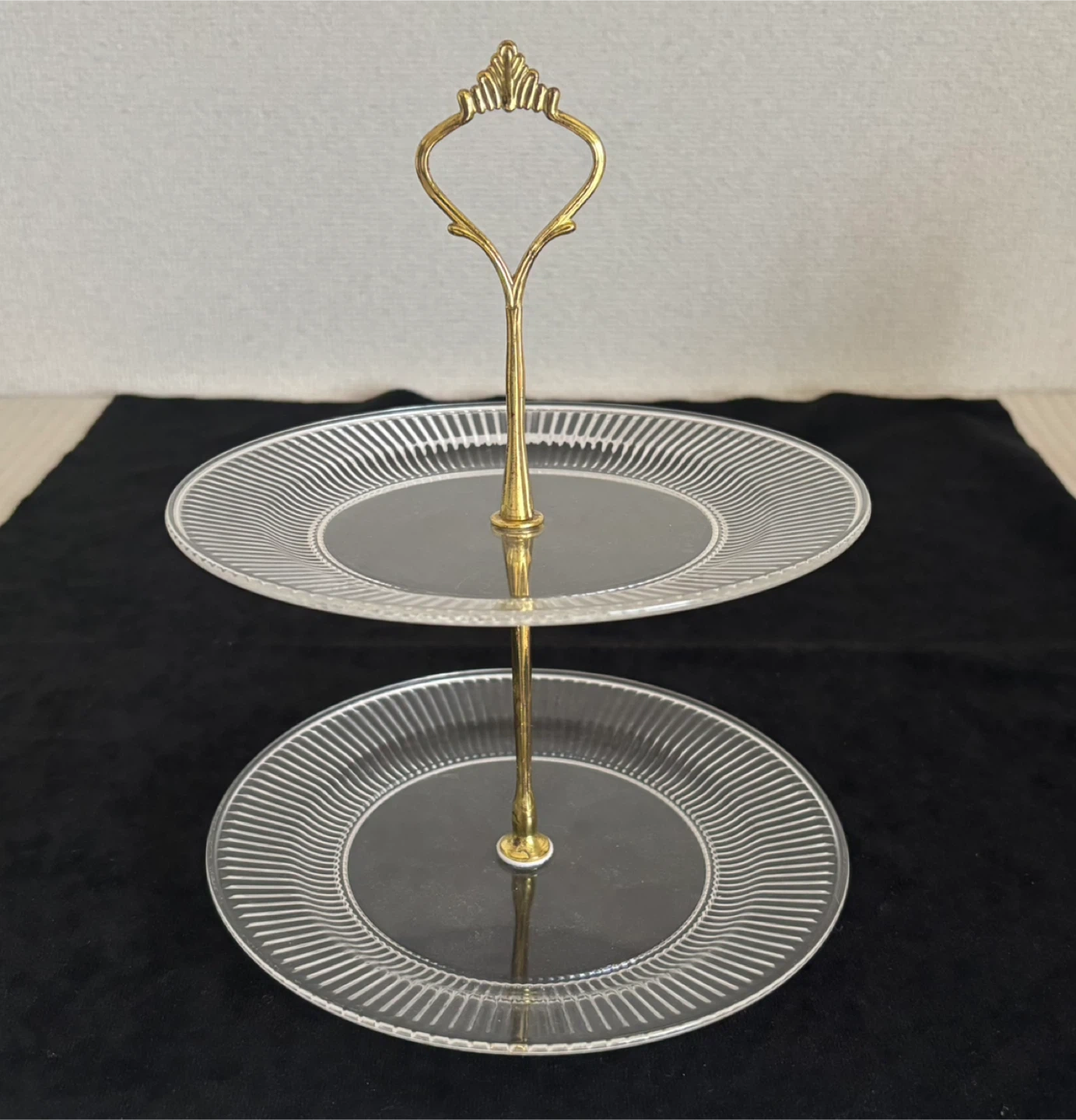 金属製スワールデザインカップケーキスタンド 2段式 ディスプレイ