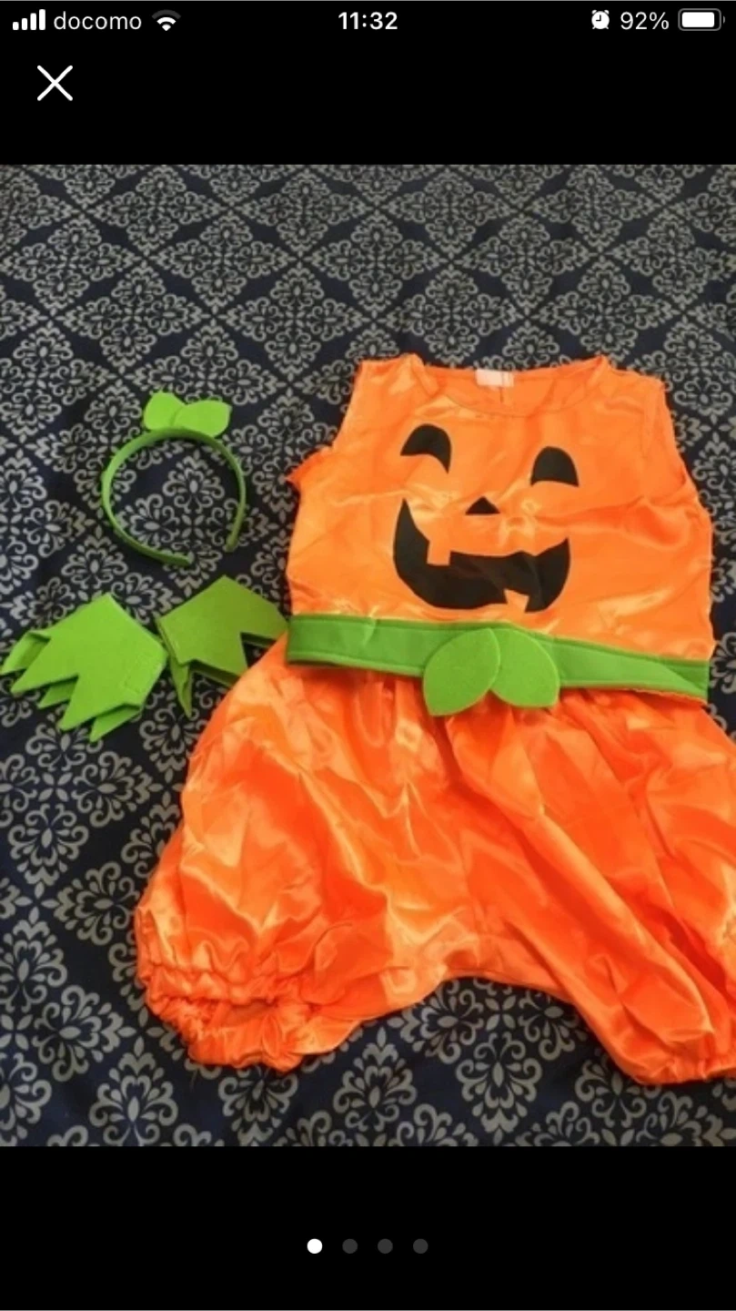 ハロウィンのパンプキンコスチュームです ・カラー:オレンジ、グリーン ・ハロウィン用 ・セット内容:トップス、パンツ、ヘアバンド、手袋 ・使用感少なめ 中古品であることご了承ください
