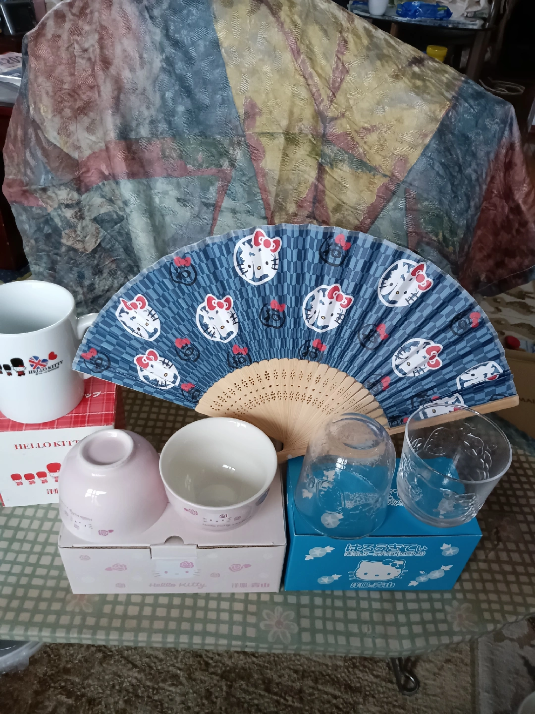 ハローキティの食器セットです ・扇子、コップ、茶碗、マグカップのセットです ・未使用品です 中古品であることご了承ください