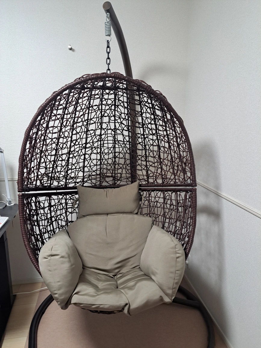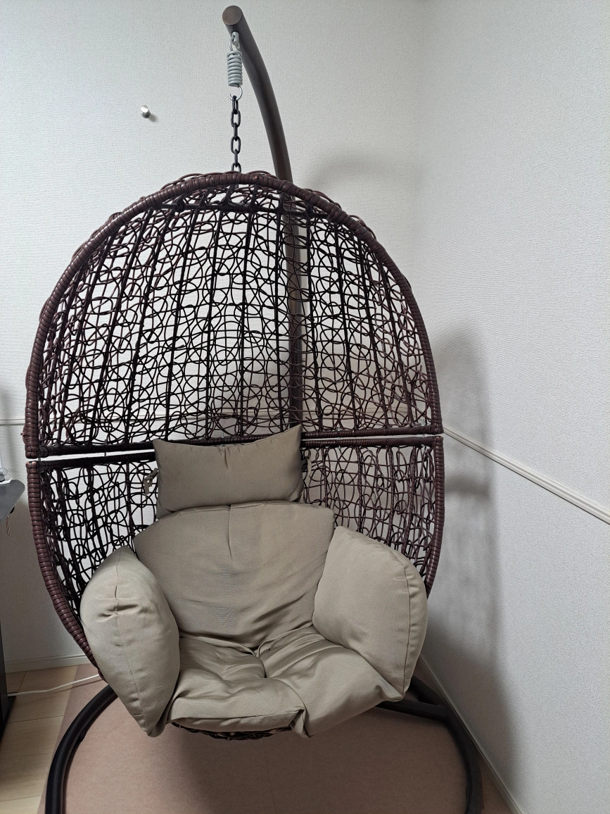 約4年前に購入したハンギングチェアです。 常に屋内で使用、使用頻度が高くなく目立ったキズや汚れはありません。 カゴや支柱は分解できますが、受け取りに来てくださる必要がございます(場所•日程は要相談(受け渡し場所の橘中学校付近)、受け取りは家の玄関先を予定しておりその後は買い主様がお運びいただきます)。 商品状態:室内保管 ブランド:LUCIAN 耐荷重:120kg 中古品であるということをご了承の上、ご購入ください。 ご不明点等ございましたらご連絡ください。