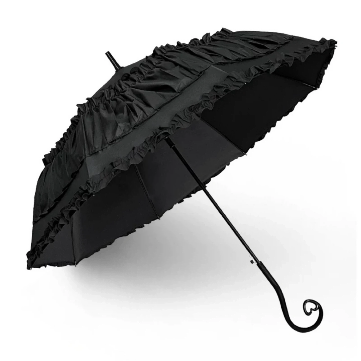 サーカス ストラップコウモリ 白黒色長柄傘 晴雨両用 ゴシックロリータ パンク