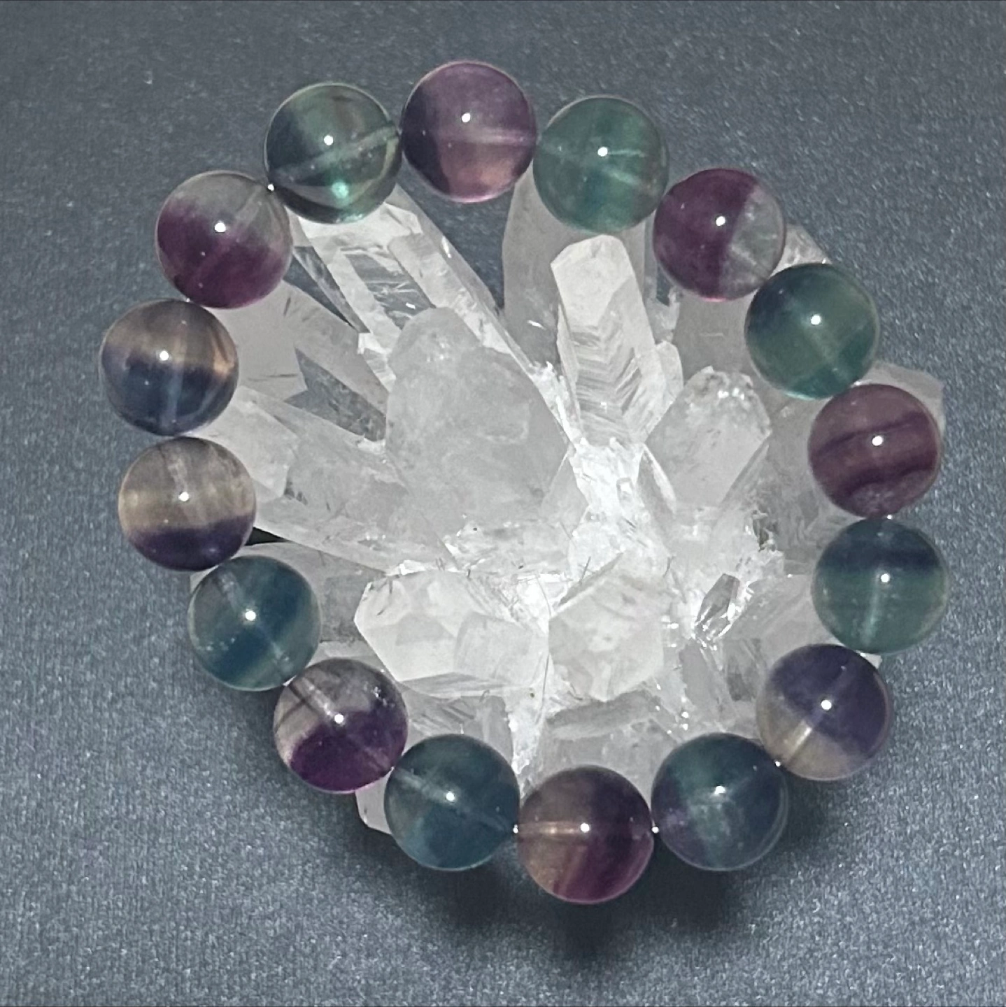 【天才の石】とも称される事もあるフローライト。 フローライトは、大人になるにつれて固定化されてきた思考パターンや抑圧された感情から自分自身を解き放つ為に働き、子供の頃の自由で無邪気な発想や思考力を高めてくれます。 フローライトのヒーリング効果 ○受験のお守り ○ネガティブな感情を解消する ○頭の疲れをとる ○集中力と思考力を高める ○自由を求める心を強める ○記憶力を高める ○抑圧された感情の解放 ○無邪気な発想と思考 内径約16cm・12mm球