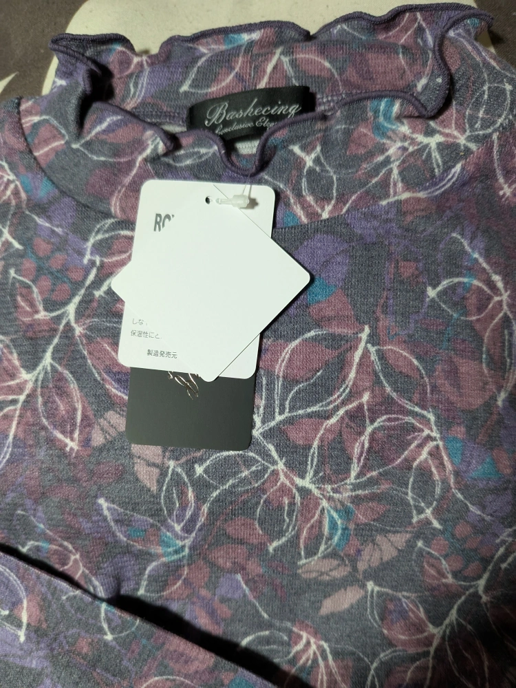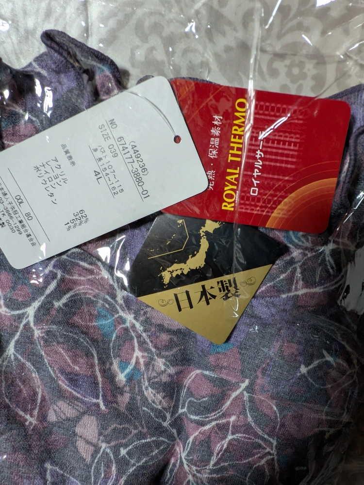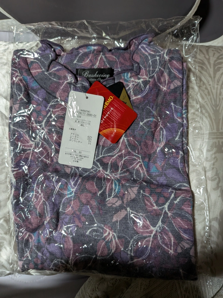 バスチーングのカットソーです ・サイズ:4L ・色:紫、葉柄 ・素材:アクリル62%、レーヨン33%、ポリウレタン5% ・日本製 柔らかい生地です…お母さんに、プレゼントしてみたら?きっと喜びますよ!! 中古品であることご了承ください