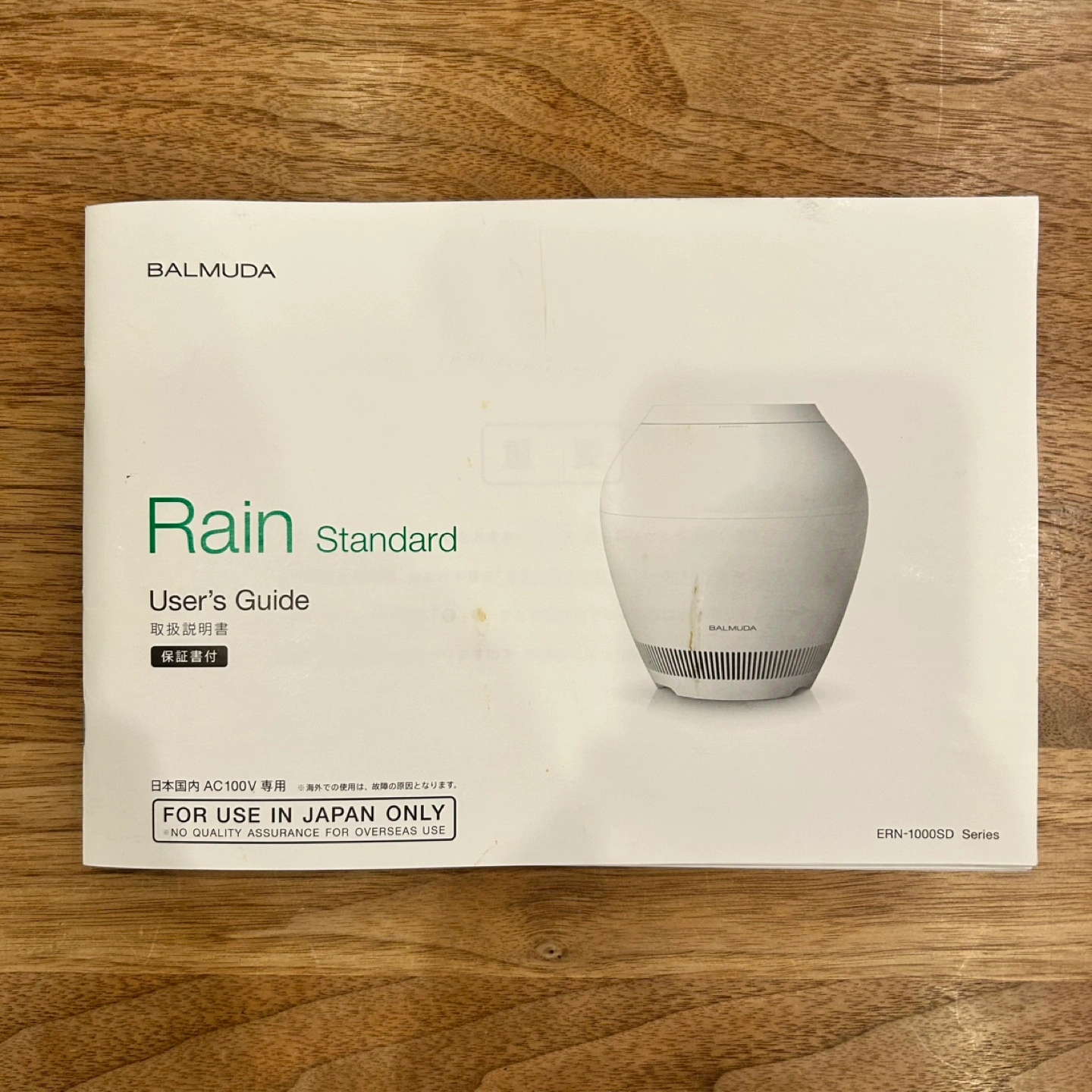 バルミューダの加湿器、Rainです。 付属品: 取扱説明書 状態: 小傷、給水部分、フィルター設置パーツに白い汚れがあります。 通電は確認済み、問題なくお使いいただけます。 フィルターなどは数回使ったものなので、交換した方が気持ちよくお使いいただけるかと思います。 つけたままでお渡ししますのでこのままお使いいただくことも可能です。 こちらから購入できます: https://www.balmuda.com/jp/rain/accessory 中古品であることをご理解の上、ご検討いただけますと嬉しいです。