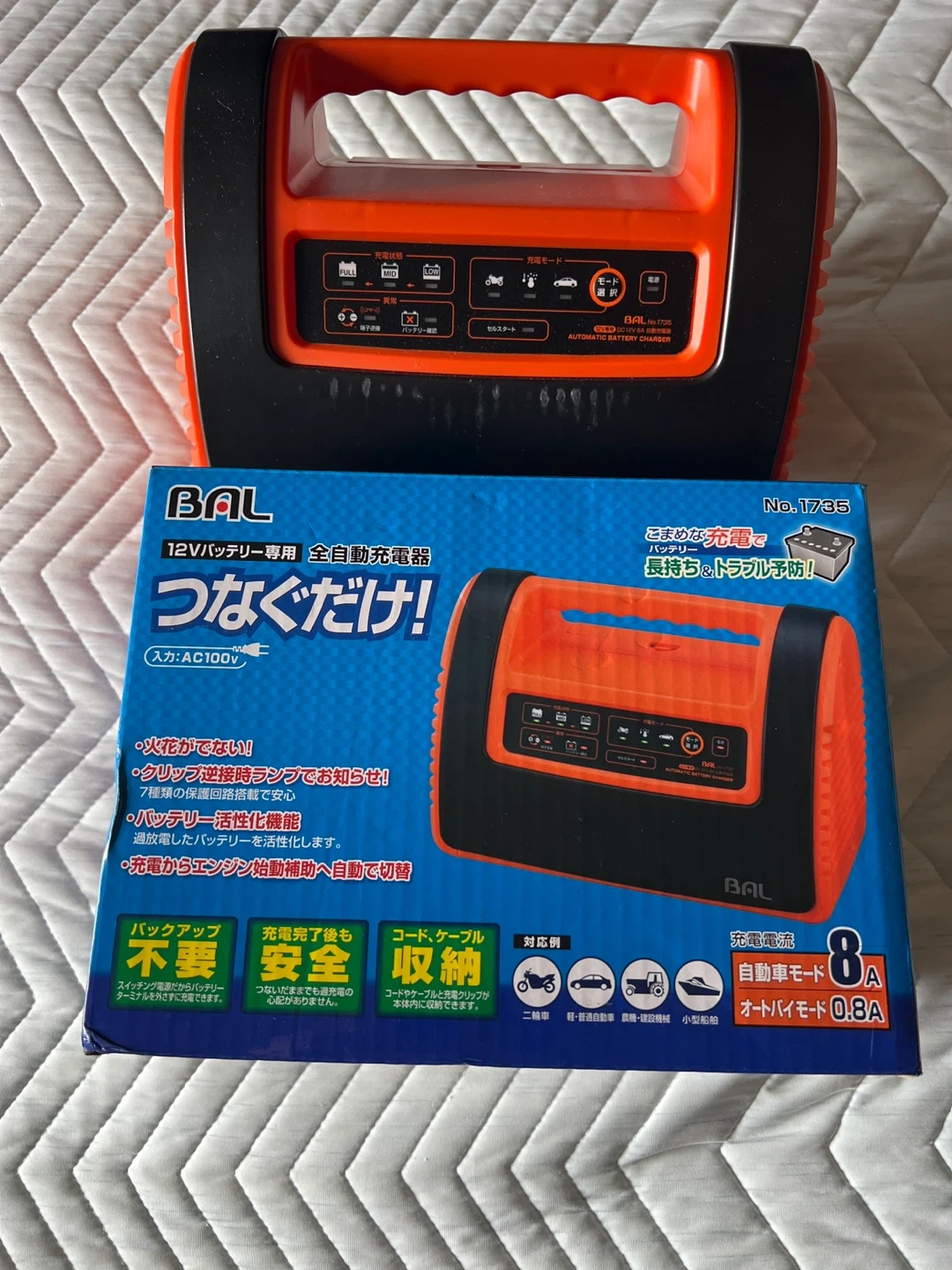 バルの全自動充電器です 【情報】 ブランド:バル 型番:No.1735 対応:二輪車、軽・普通自動車、農機・建設機械、小型船舶 【状態】 使用感少なめ 中古品であることご了承ください