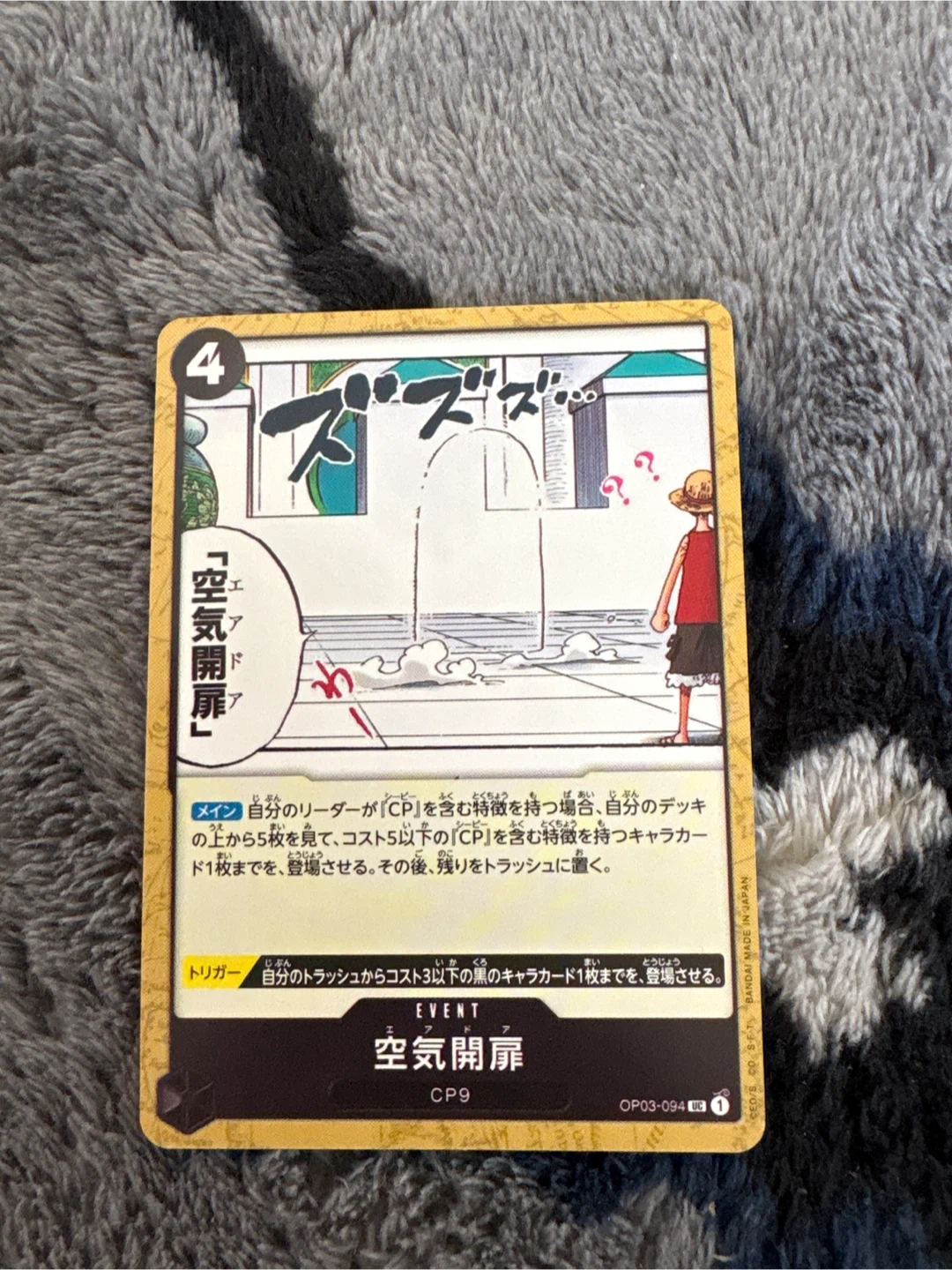 ホーム戸田市のフリマ戸田市の本・ゲーム・エンタメ美女木東の本・ゲーム・エンタメバンダイ ワンピースカード 空気開扉 OP03-094シンコウ美女木東36.5℃あたたかさバンダイ ワンピースカード 空気開扉 OP03-094本・ゲーム・エンタメ · 譲ります(0円)ワンピースのカードです ・カード名:空気開扉 ・型番:OP03-094 ・CP9 ・BANDAI 中古品であることご了承くださいチャット0·お気に入り0·閲覧数2アプリで問合せ/購入申請取引はアプリでのみ可能です。ダウンロードしてご利用ください。シンコウさんの出品すべて見るAMNIBUS Tokyo 7th シスターズ Tシャツ Lサイズ2,000円美女木東ほんとにあった!呪いのビデオ BEST of BEST DVD500円美女木東DVD ヴァイブレータ 寺島しのぶ、大森南朋500円美女木東コロンビア ジャケット イエロー系 Sサイズ950円美女木東SDガンダム カードダス まとめ売り500円美女木東マジック・ザ・ギャザリング ナヒリの戦争術譲ります(0円)美女木東