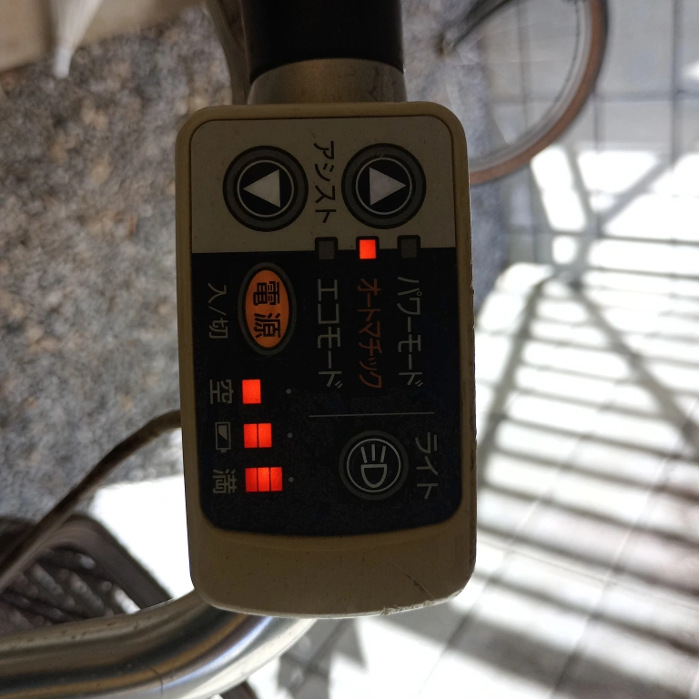 ☆引き取り大歡迎☆ 引き取りについて、東京都杉並区和泉町(明大前駅)の辺になります。 ☆配達は以下の駅及び近辺☆ (1)京王線(新宿、初台、幡ケ谷、笹塚、代田橋、明大前、下高井戸) (2)井の頭線(永福町、西永福、明大前、東松原、新代田、下北沢、池ノ上、駒場東大前、神泉、渋谷) ☆自転車の現状☆ 日々乗っている自転車なので、問題なくお乗り頂けます。もちろんアシスト走行やスイッチ操作及び照明チェック済み。古いですが乗りやすいと思います。 ★26インチ ★ホイール:鋼鉄 ★ギア:3段 ★モード切替: パワーモード・オートマチック・エコモード(写真4参照) ★充電器:あり(パナソニック、写真8,9参照) ★バッテリー:8.9Ah(写真7参照) (1回充電で18km程度走れます) ★タイヤ:bridgestone(写真2,3参照) ★ベル:使えますが手持ち摘みが折れています(写真5参照) ★椅子:合皮が割れているため、カバー利用中(写真6参照)。 ★カギ:1本 ★防犯登録 現在、わたくしの名義ですが、変更及び登録料(数百円)はご自身でお願いします。 宜しくお願い致します。