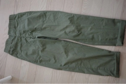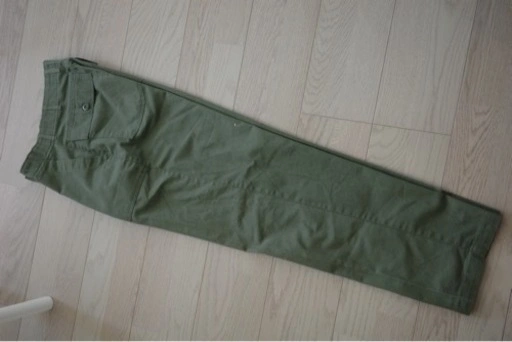 緑色のパンツです。 京都の古着屋さ んで購入しました。購入時から少し白い汚れがあります(5枚目中央など)。 2年前に購入し、秋冬に2週間に一度くらい着用、毎度ホームクリーニングしています。断捨離のため出品します。 総丈105cm、ウエスト72cm、股下77cmです。 裾は折り曲げても良いと思います。男性痩せ型172センチが着用した場合、2回ほど折り曲げるとちょうど良い丈でした。 ウエストは若干細めです。シャツインすると足がスラっと見えます。 手渡し場所は中央線高円寺駅徒歩1分です。 高円寺、阿佐ヶ谷、荻窪、西荻窪、中野、新宿、三鷹、吉祥寺あたりでしたら対応可能です。 ご希望の方はお気軽にご連絡ください。