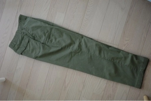 緑色のパンツです。 京都の古着屋さんで購入しました。購入時から少し白い汚れがあります (5枚目中央など)。 2年前に購入し、秋冬に2週間に一度くらい着用、毎度ホームクリーニングしています。断捨離のため出品します。 総丈105cm、ウエスト72cm、股下77cmです。 裾は折り曲げても良いと思います。男性痩せ型172センチが着用した場合、2回ほど折り曲げるとちょうど良い丈でした。 ウエストは若干細めです。シャツインすると足がスラっと見えます。 手渡し場所は中央線高円寺駅徒歩1分です。 高円寺、阿佐ヶ谷、荻窪、西荻窪、中野、新宿、三鷹、吉祥寺あたりでしたら対応可能です。 ご希望の方はお気軽にご連絡ください。